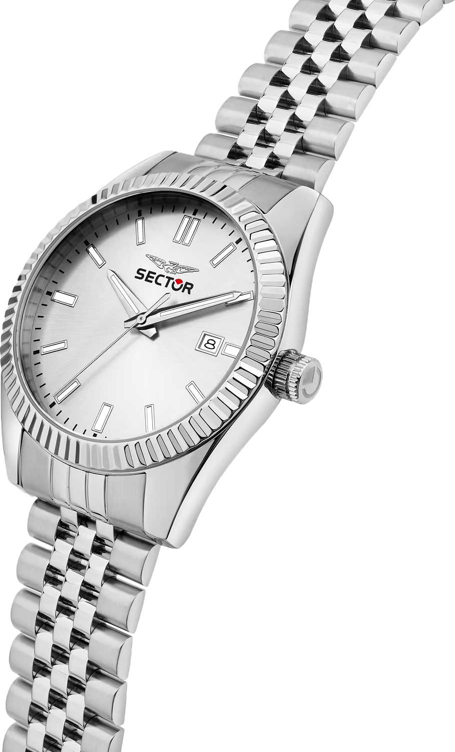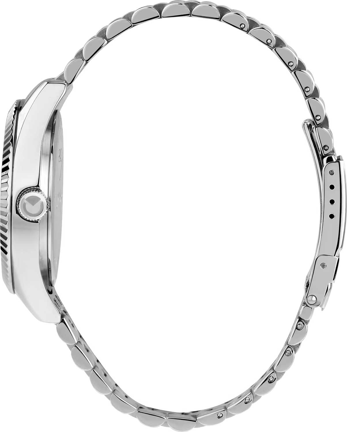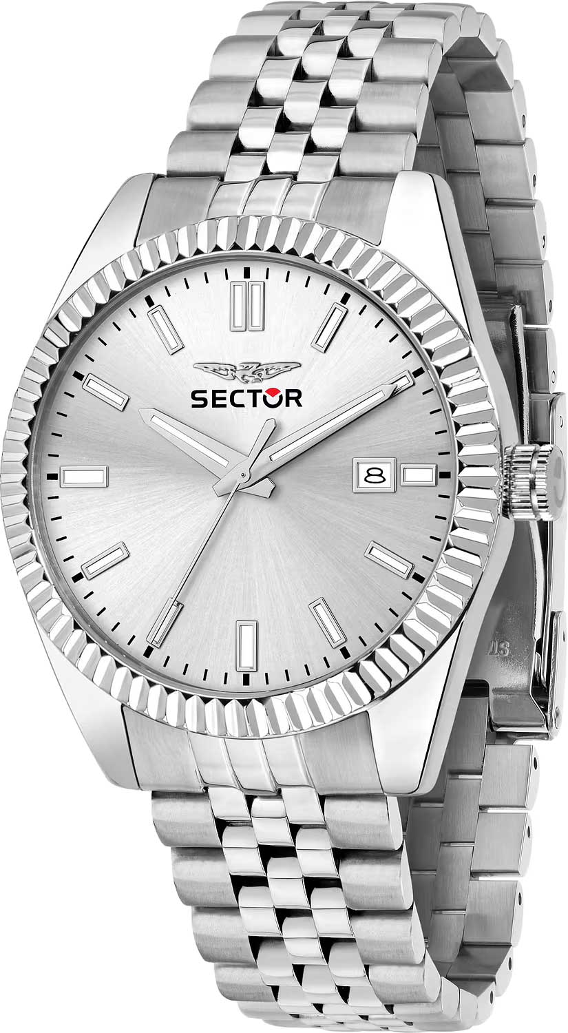 Мужские часы. Циферблат с метками в виде штрихов выполнен по технологии Sunray (солнечные лучи). Окошко даты находится в положении 3 часа. Рифленый безель. Браслет с раскладывающейся застежкой. Застежка с системой блокировки.