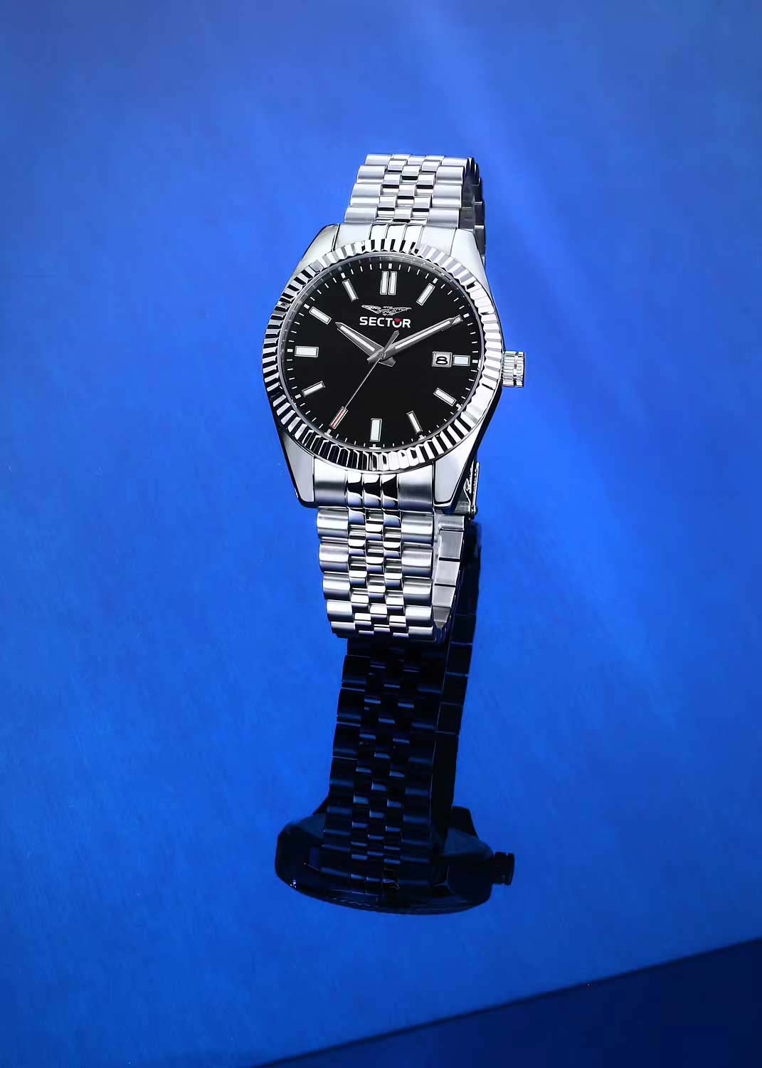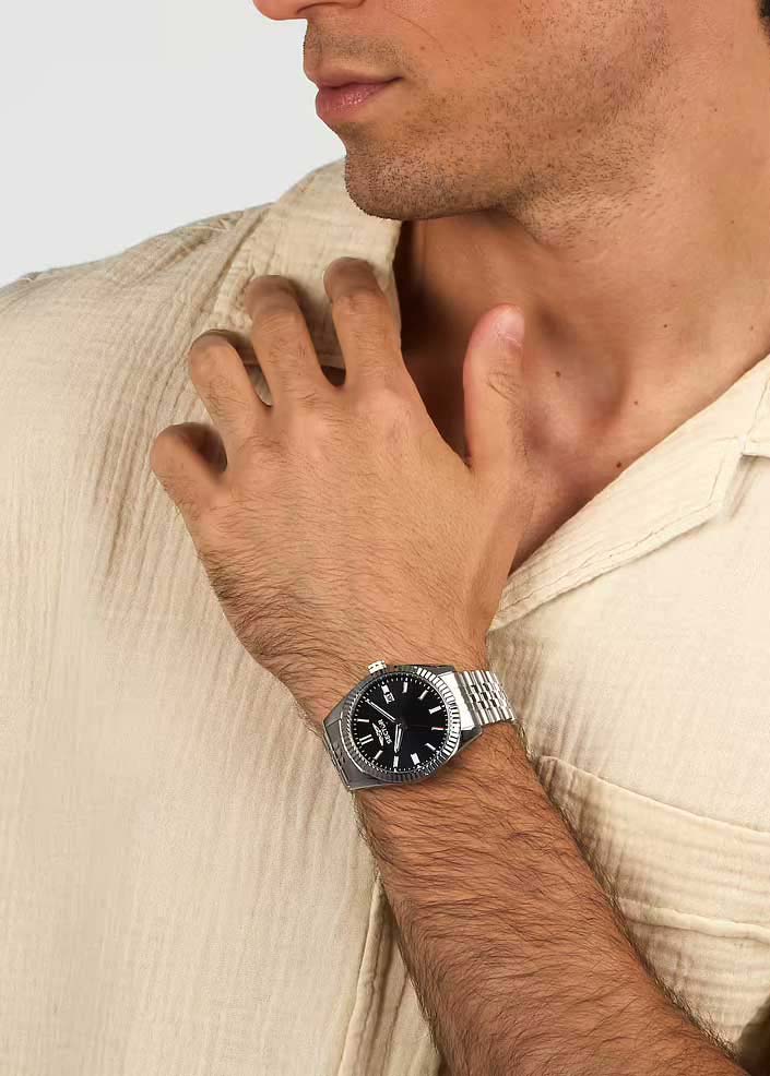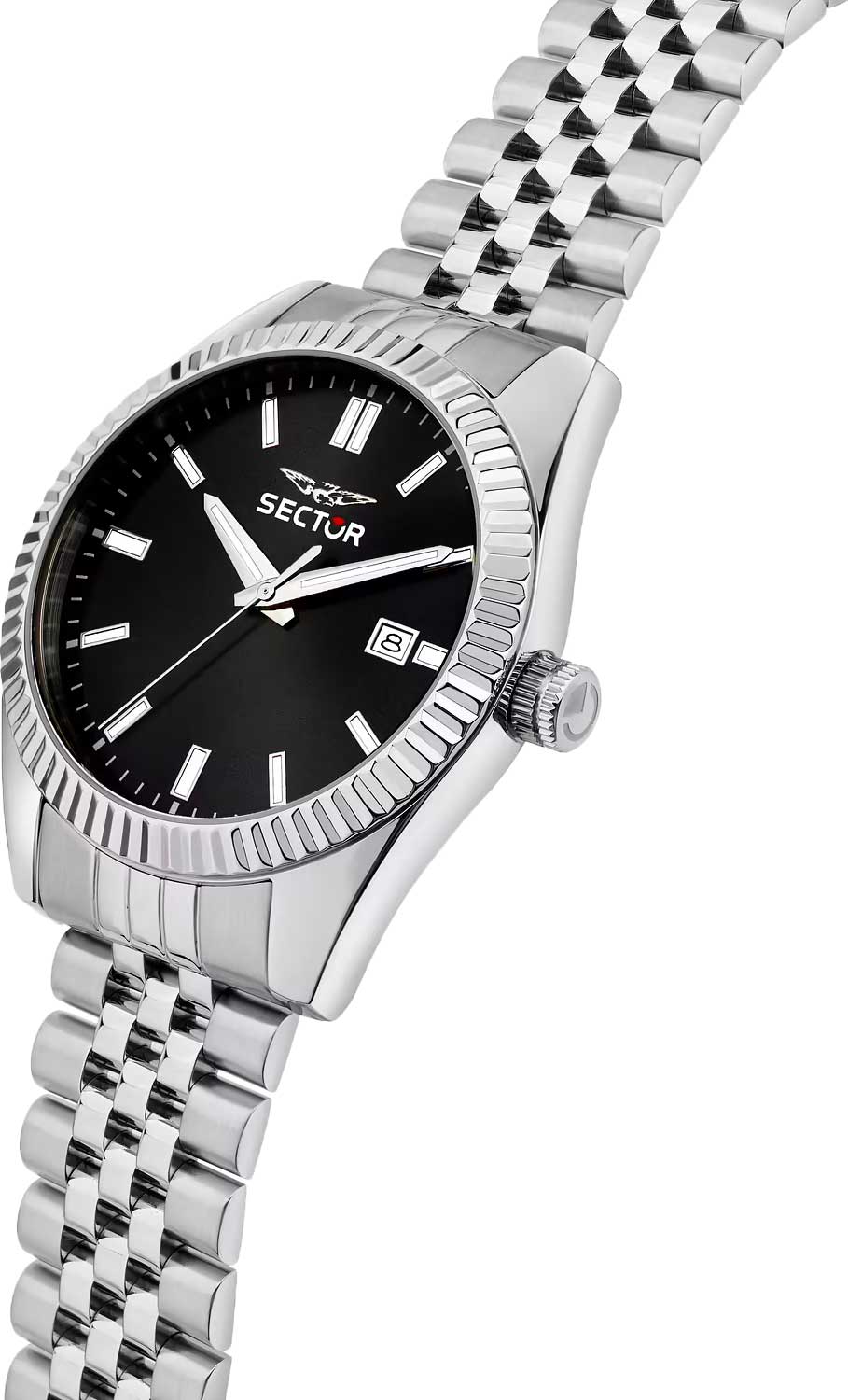 Мужские часы. Циферблат с метками в виде штрихов выполнен по технологии Sunray (солнечные лучи). Окошко даты находится в положении 3 часа. Рифленый безель. Браслет с раскладывающейся застежкой. Застежка с системой блокировки. Имеется женский вариант модели R3253240512.