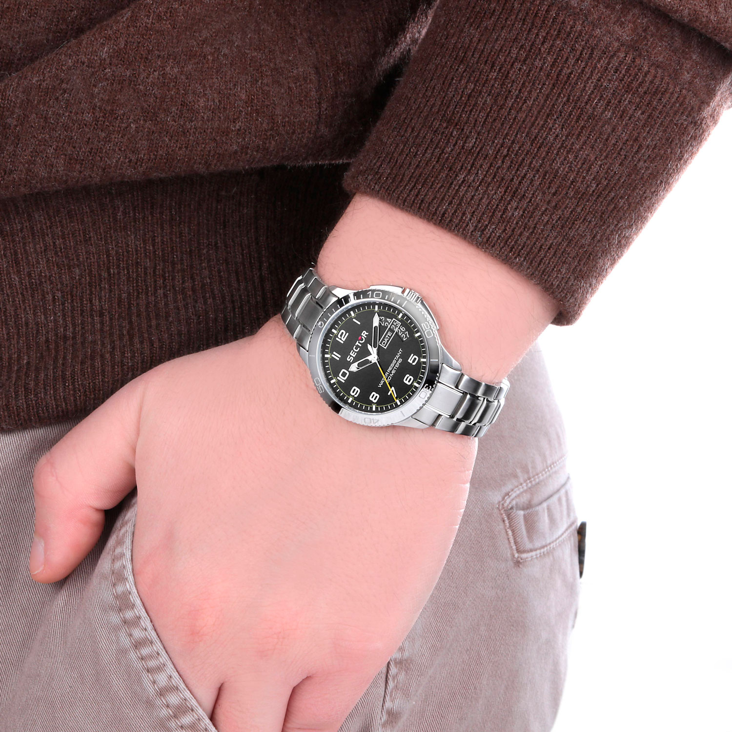 Модель для уверенных и современных мужчин, которые находятся в поисках идеальных часов. 270. Мужские часы. Циферблат с метками в виде штрихов и арабских цифр. Окошко даты. Заводная головка с защитой. Браслет с раскладывающейся застежкой.