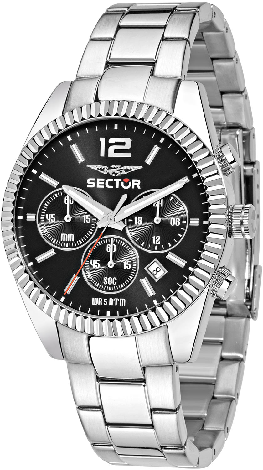 Хронограф на стальном браслете станет отличным вариантом на каждый день. 240. Часы-хронограф с секундомером. Циферблат выполнен по технологии Sunray (солнечные лучи). Метки в виде штрихов. Окошко даты. Рифленый безель. Браслет с раскладывающейся застежкой. Застежка с системой блокировки.