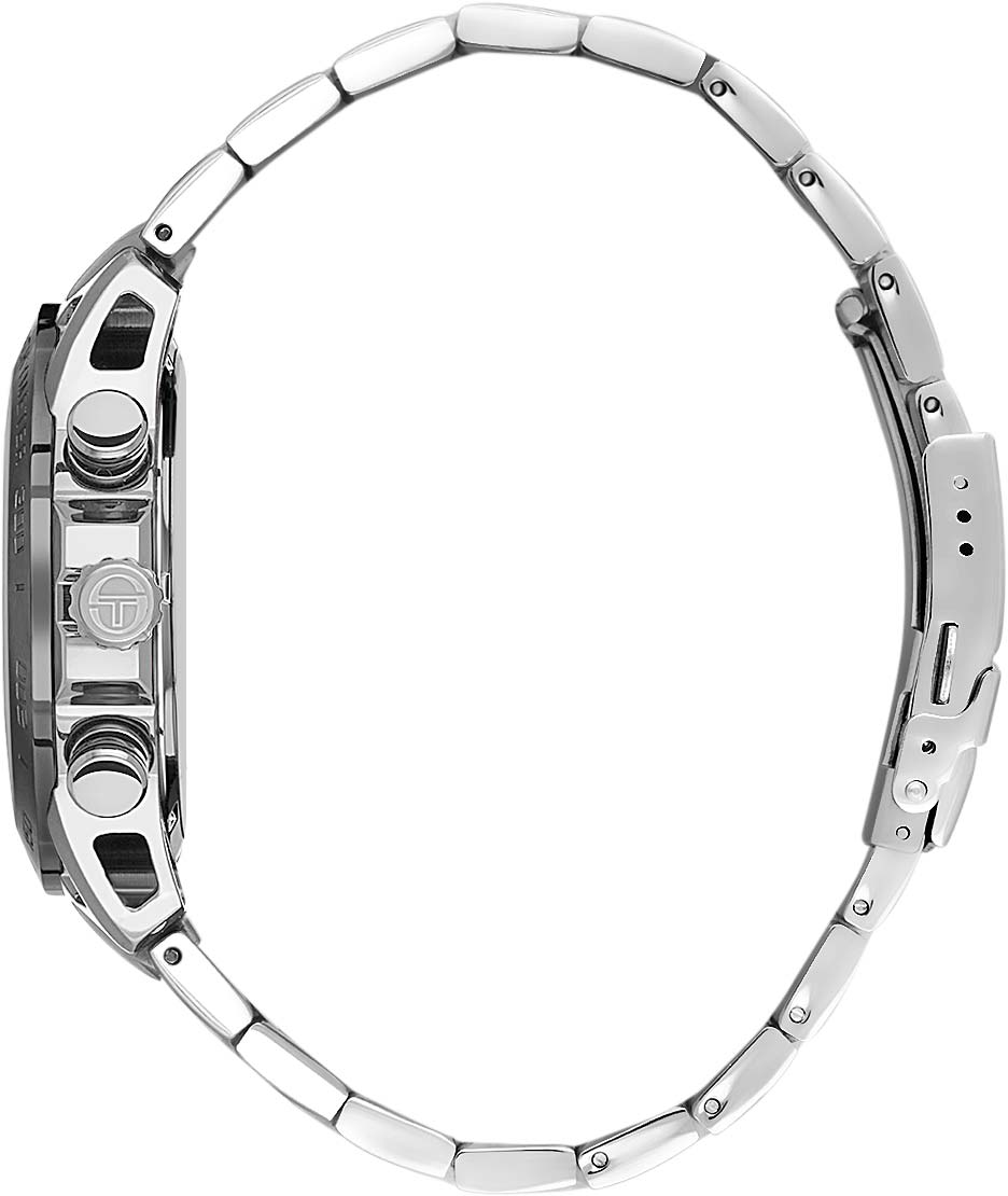 Практичный аксессуар, наделенный широким функционалом - идеальная составляющая городского стиля современного мужчины. Часы-хронограф с секундомером. Круглый стальной корпус. Безель с тахиметрической шкалой. Метки в виде штрихов. Окошко даты находится между часовыми отметками 4 и 5. Рифленая заводная головка. Браслет с раскладывающейся застежкой. Производитель оставляет за собой право вносить изменения во внешний вид часов.