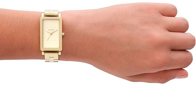 Женские кварцевые часы Hagen Lille. Прямоугольный стальной корпус. Циферблат с метками в виде штрихов. Стальной браслет с раскладывающейся застежкой.