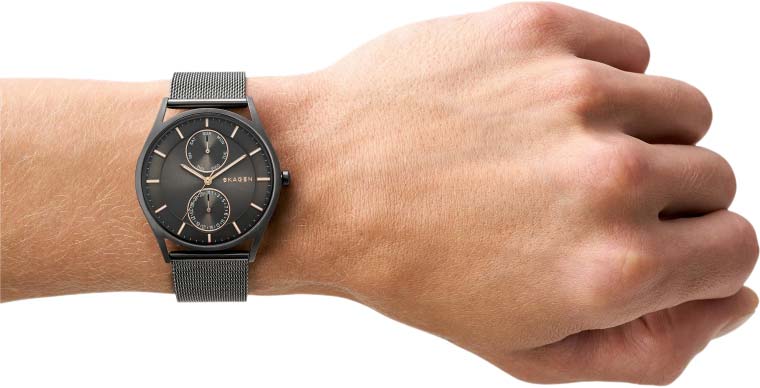Выразительный дизайн этого мужского аксессуара станет еще одним шагом для создания успешного имиджа. Holst Multifunction. Наручные часы с круглым стальным корпусом. Циферблат выполнен по технологии Sunray (солнечные лучи). Метки в виде штрихов. Дата и день недели вынесены на отдельные циферблаты. Браслет миланского плетения с регулируемой застежкой.