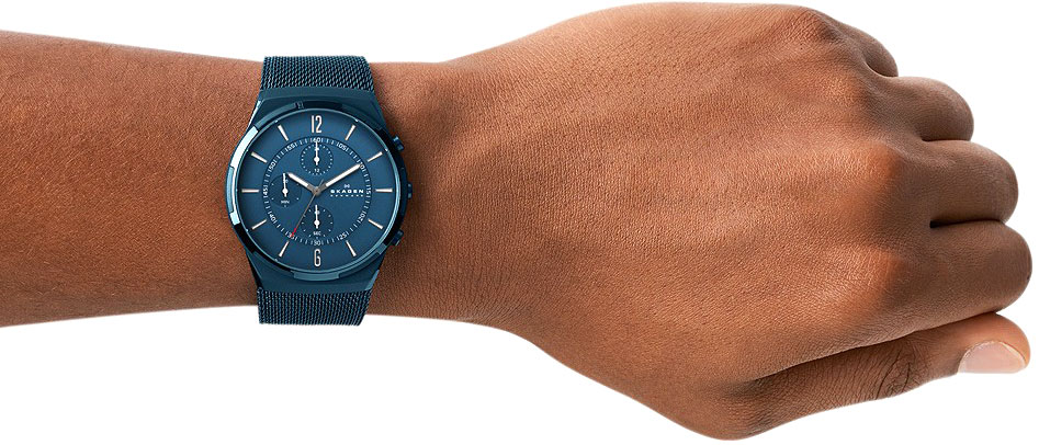 Безупречный мужской аксессуар всегда актуален в стильном образе. Melbye. Наручные часы-хронограф с секундомером. Круглый стальной корпус с минеральным стеклом. Заостренные прямоугольные стрелки в стиле Baton. Метки в виде штрихов, 6 и 12 часовые метки в виде арабских цифр. Метки и стрелки с люминесцентным покрытием, которое светится в темноте после непродолжительной зарядки на свету. Удобный и надежный миланский стальной браслет. Застежка с системой блокировки.