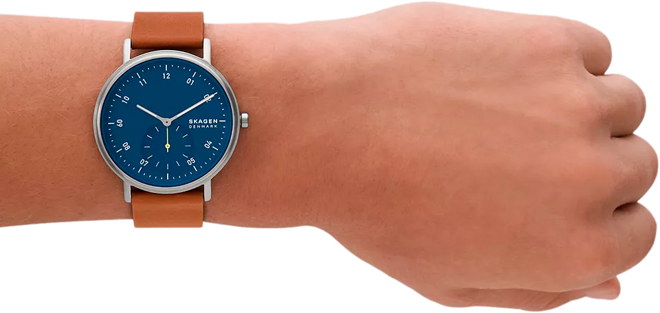 Этот лаконичный аксессуар идеально подойдет для повседневного общения со временем. Мужские часы с круглым стальным корпусом. Секундная стрелка вынесена на отдельный циферблат. Люминесцентные стрелки. Кожаный ремешок с классической застежкой.
