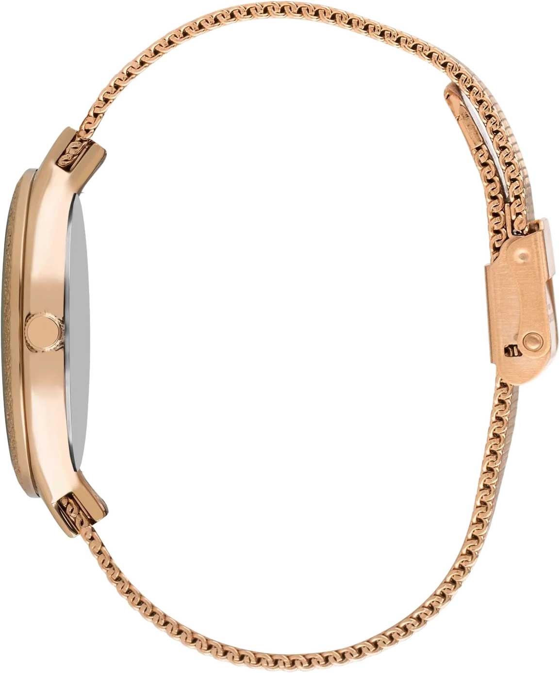 Этот модный аксессуар станет лучшим дополнением вашего безупречного образа. Женские наручные кварцевые часы. Круглый корпус из суперметалла, который прочнее других сплавов. Текстурированный безель. Циферблат без меток украшен фианитом и логотипом бренда. Рифленая заводная головка. Браслет миланского плетения.