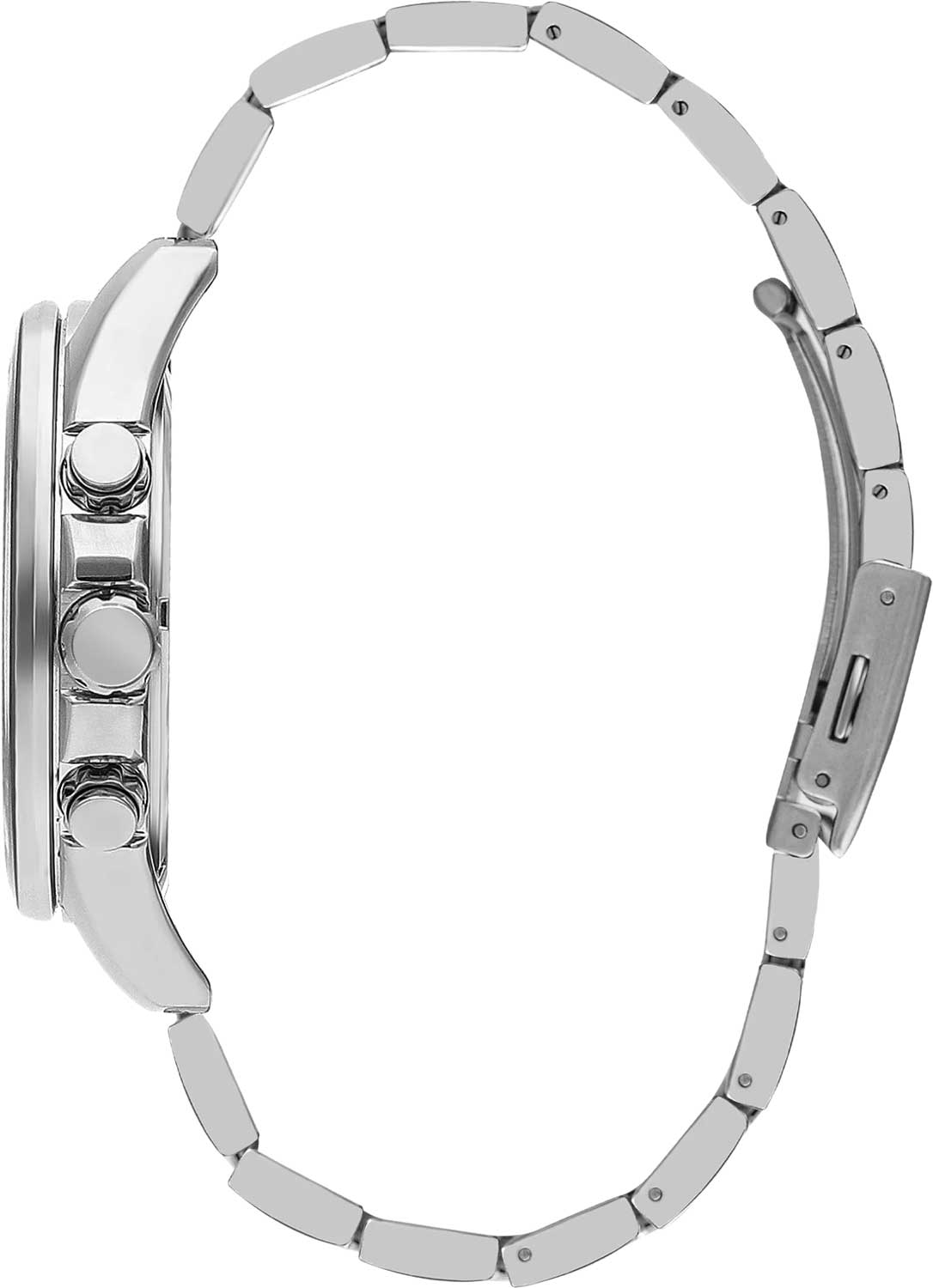 Функциональный аксессуар идеально подойдет для тренировок или для повседневного использования. Часы-хронограф с секундомером. Круглый корпус из суперметалла, который прочнее других сплавов. 12-ти и 24-х часовой формат времени. Циферблат с метками в виде штрихов выполнен по технологии Sunray (солнечные лучи) и украшен логотипом бренда. Окошко даты находится между отметками 4 и 5 часов. Рифленая заводная головка с защитой. Браслет с раскладывающейся застежкой.