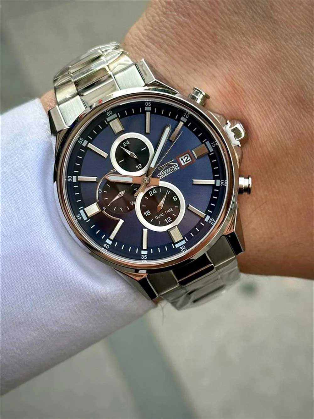 Стильный мужской аксессуар будет прекрасным партнером в вопросах времени. Наручные кварцевые часы. Круглый корпус из суперметалла, который прочнее других сплавов. 12-ти и 24-х часовой формат времени. Второй часовой пояс в 24-х часовом формате времени. Циферблат с метками в виде штрихов выполнен по технологии Sunray (солнечные лучи) и украшен логотипом бренда. Окошко даты находится в положении 3 часа. Время в 24-х часовом формате времени, день недели и второй часовой пояс отображаются на отдельных циферблатах. Шестигранная заводная головка с защитой. Браслет с раскладывающейся застежкой.