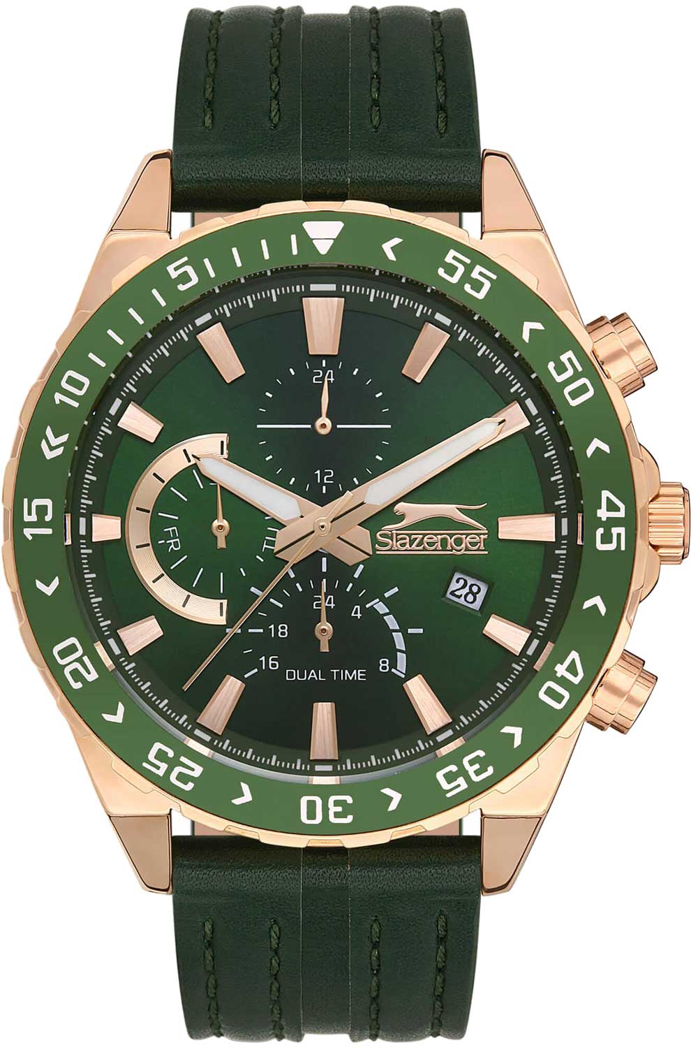 Стильный аксессуар от Slazenger раскроет мужественный характер своего обладателя. Наручные кварцевые часы. Круглый корпус из суперметалла, который прочнее других сплавов. 12-ти и 24-х часовой формат времени. Второй часовой пояс в 24-х часовом формате времени. Циферблат с метками в виде штрихов выполнен по технологии Sunray (солнечные лучи) и украшен логотипом бренда. Окошко даты находится в положении 4 часа. Время в 24-х часовом формате времени, день недели и второй часовой пояс отображаются на отдельных циферблатах. Рифленая заводная головка с защитой. Удобный кожаный ремешок с классической застежкой.