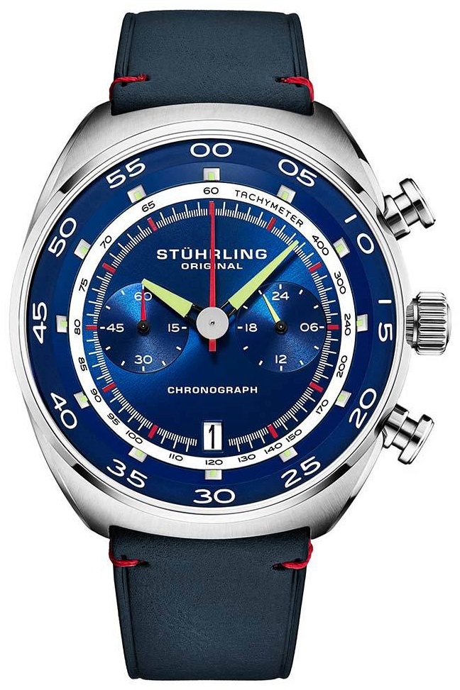 Хронограф от компании Stuhrling станет незабываемым подарком для поклонников стильных часов. Часы-хронограф с секундомером и тахиметром. 12-ти и 24-х часовой формат времени. Накладные метки в виде штрихов. Окошко даты находится в положении 6 часов. Завинчивающаяся задняя крышка. Ремешок с классической застежкой.