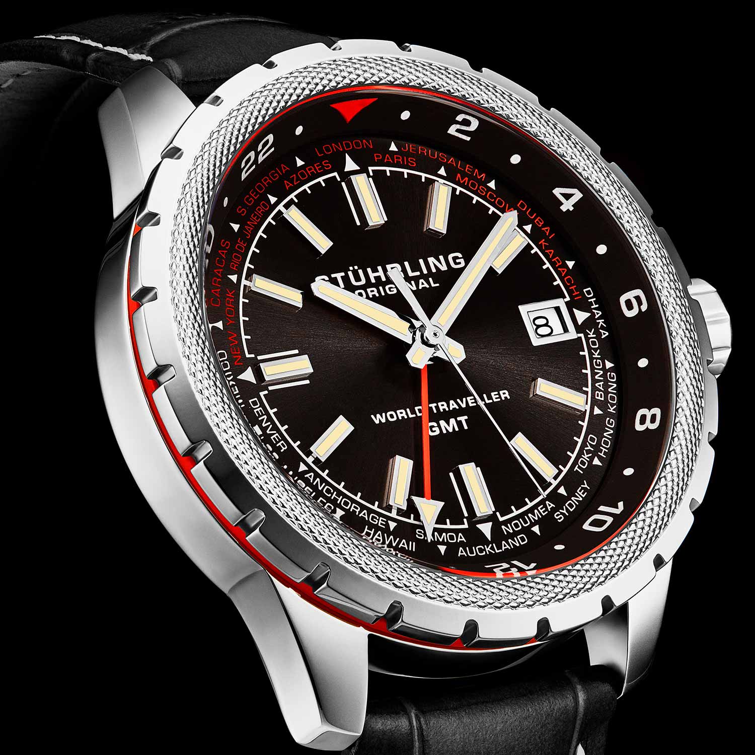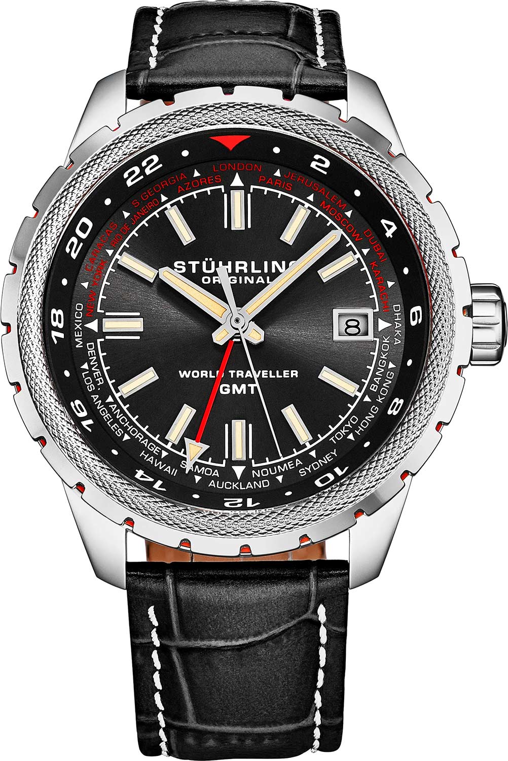 Элегантные часы с надежным швейцарским механизмом - ваш путеводитель в точные измерения времени и в увлекательное исследование мира. Мужские кварцевые часы Global Voyager. Стальной круглый корпус. Двунаправленный безель помогает отслеживать часовые пояса. Функция GMT идеально подходит для путешественников по всему миру. Циферблат с метками в виде штрихов, арабских цифр и названием мировых городов выполнен по технологии Sunray (солнечные лучи). Метки и стрелки с люминесцентным покрытием, которое светится в темноте после непродолжительной зарядки на свету. Окошко даты находится в положении 3 часа. Завинчивающаяся задняя крышка. Кожаный ремешок с классической застежкой.