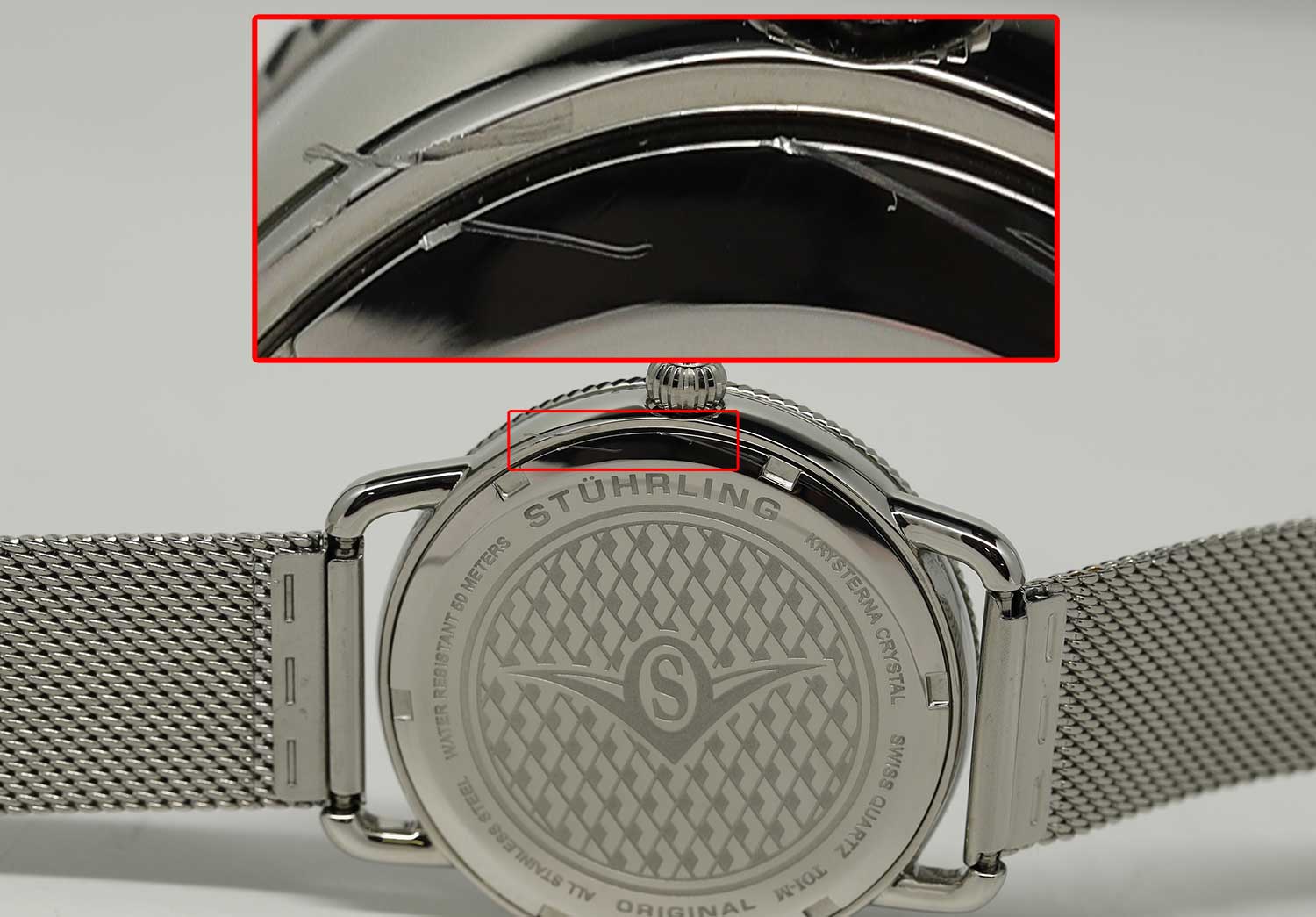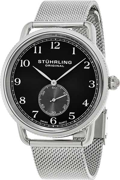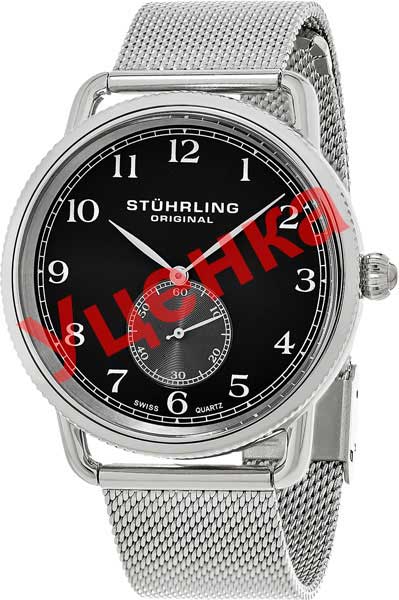 Уценка. Царапины на корпусе и задней крышке, сколы на безеле. Classique. Секундная стрелка вынесена на отдельный циферблат. Браслет миланского плетения. Завинчивающаяся задняя крышка украшена гравировкой Stuhrling.