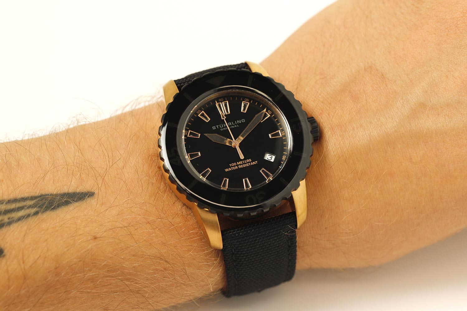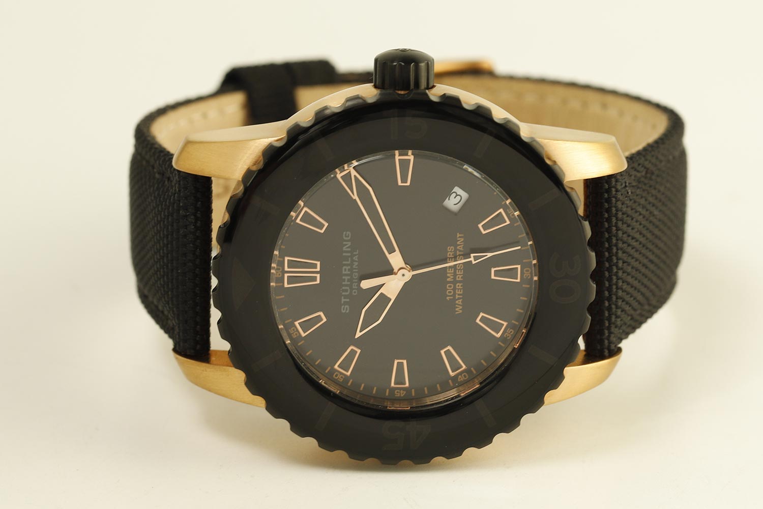 Выразительный дизайн этих часов придется по вкусу современному ценителю стильного мужского образа. Vector. Безель вращается в одном направлении. Завинчивающаяся задняя крышка украшена гравировкой Stuhrling.