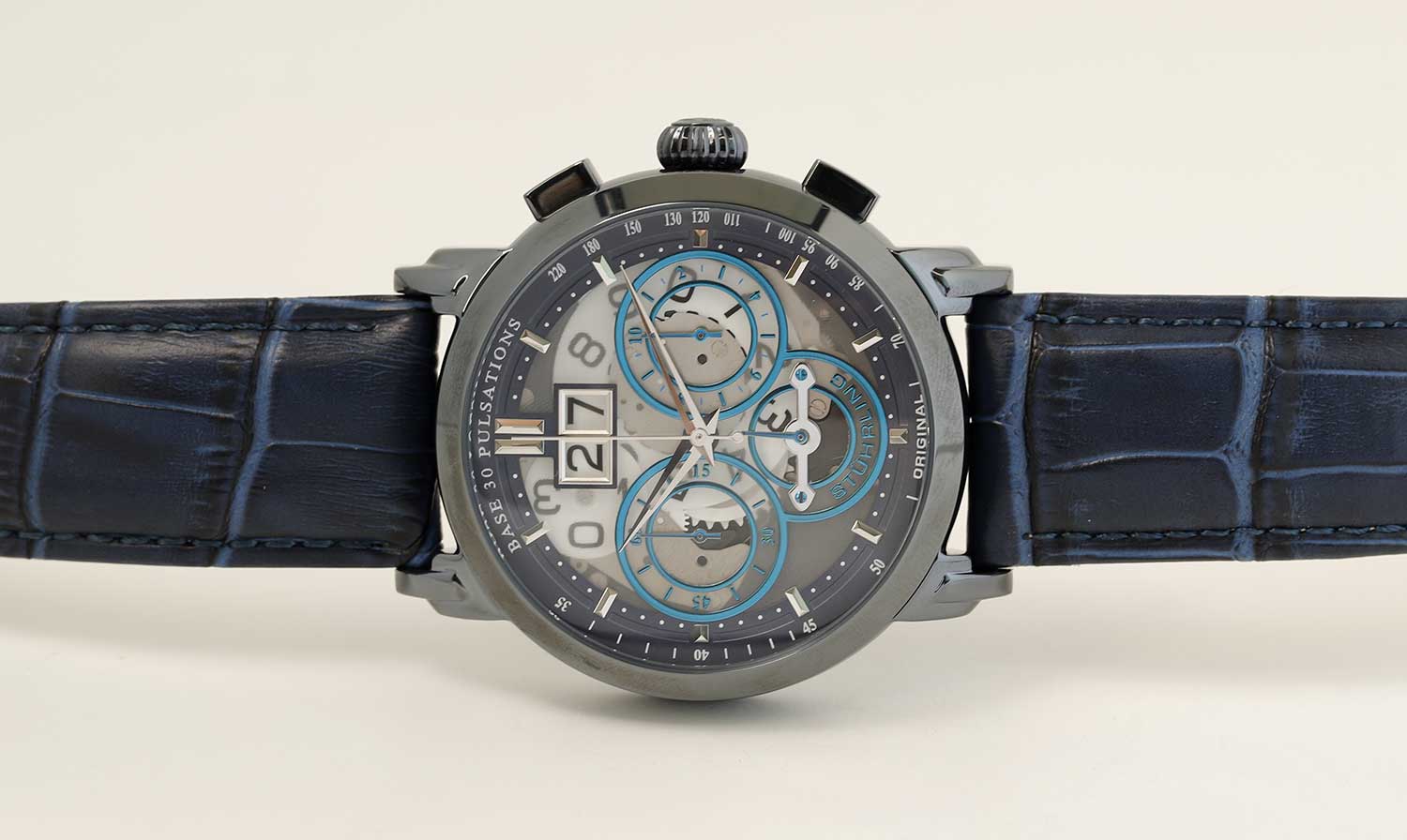 Выразительный дизайн этого хронографа отлично подчеркнет образ мужчины. Imperia. Скелетонизированные часы-хронограф с секундомером и тахиметром. Накладные метки в виде штрихов. Рифленая заводная головка. Завинчивающаяся задняя крышка. Браслет с раскладывающейся застежкой.