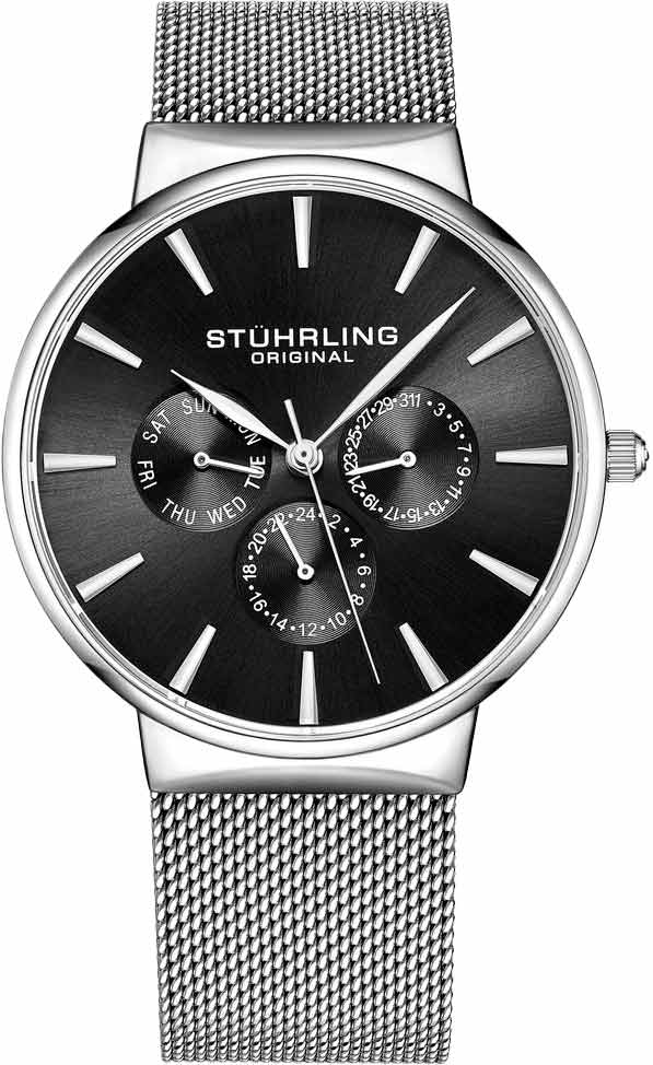 Часы с дополнительными функциями помогут вам держать время под контролем. Monaco. Циферблат выполнен по технологии Sunray (солнечные лучи). 12-ти и 24-х часовой формат времени, дата и день недели отображаются на отдельных циферблатах. Накладные метки в виде штрихов. Рифленая заводная головка. Браслет миланского плетения.