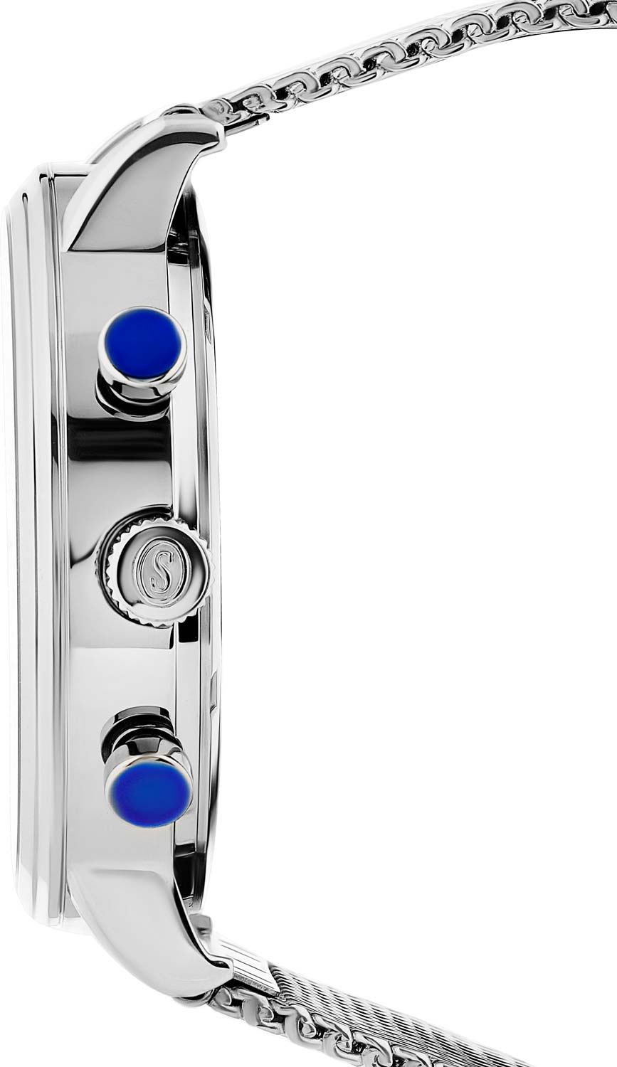 Часы с дополнительными функциями помогут вам держать время под контролем. Monaco. Часы-хронограф с секундомером. Накладные метки в виде штрихов и арабских цифр. Окошко даты. Браслет миланского плетения.