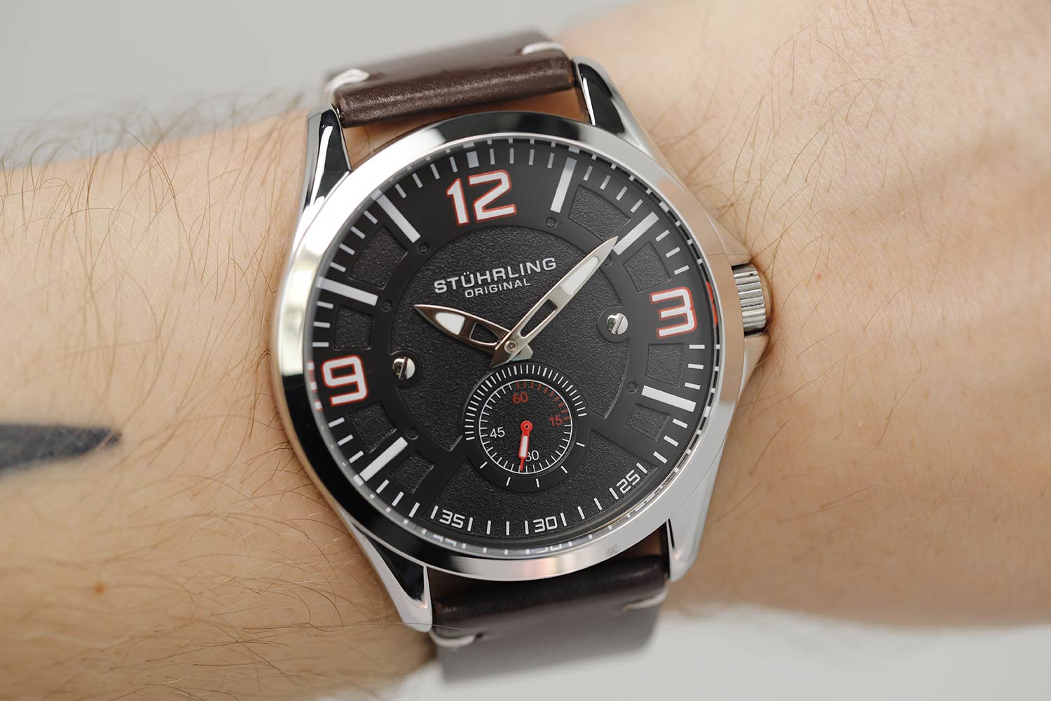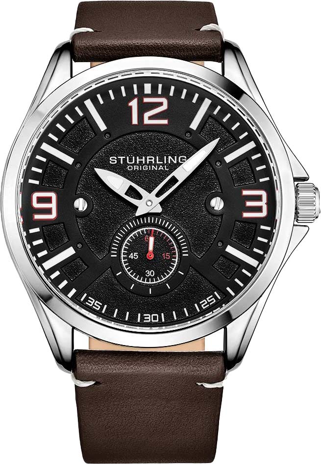 Надежные и стильные часы понравятся молодым парням, которые знают толк в стильных аксессуарах. Aviator. Мужские часы. Секундная стрелка вынесена на отдельный циферблат. Метки в виде штрихов и арабских цифр. Завинчивающаяся задняя крышка и заводная головка с защитой. Ремешок с классической застежкой.