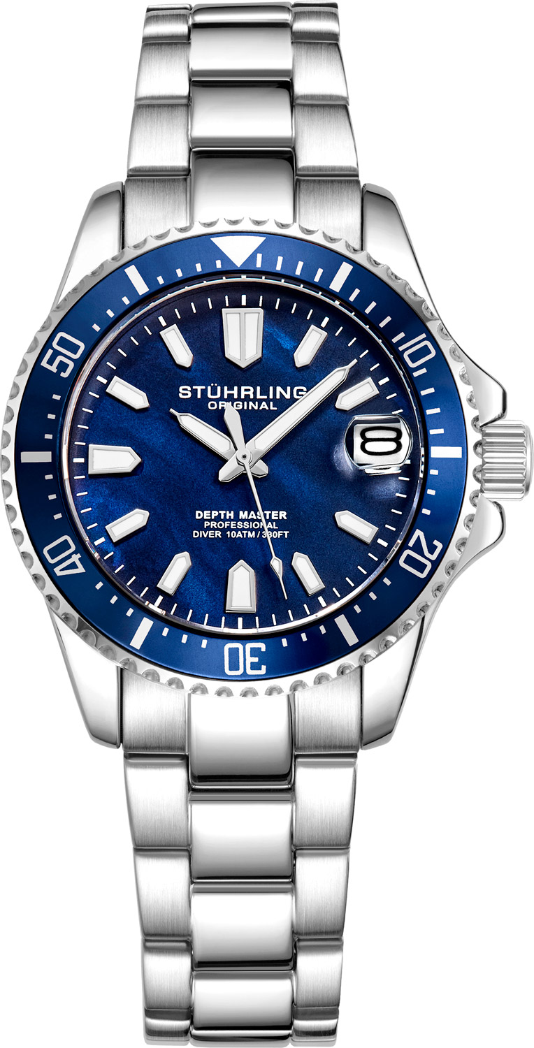 Стильные часы, сочетающие в себе дух приключений и высокое мастерство, созданы для женщин, которых привлекают глубины океанов. Женские дайверские кварцевые часы Depthmaster. Круглый стальной корпус. Рифленый безель с минутной шкалой вращается в одном направлении. Перламутровый циферблат с метками в виде штрихов. Заостренные прямоугольные стрелки в стиле Baton. Метки и стрелки с люминесцентным покрытием, которое светится в темноте после непродолжительной зарядки на свету. Окошко даты с увеличительным стеклом находится в положении 3 часа. Завинчивающаяся рифленая заводная головка с защитой. Надежный стальной браслет с раскладывающейся застежкой.