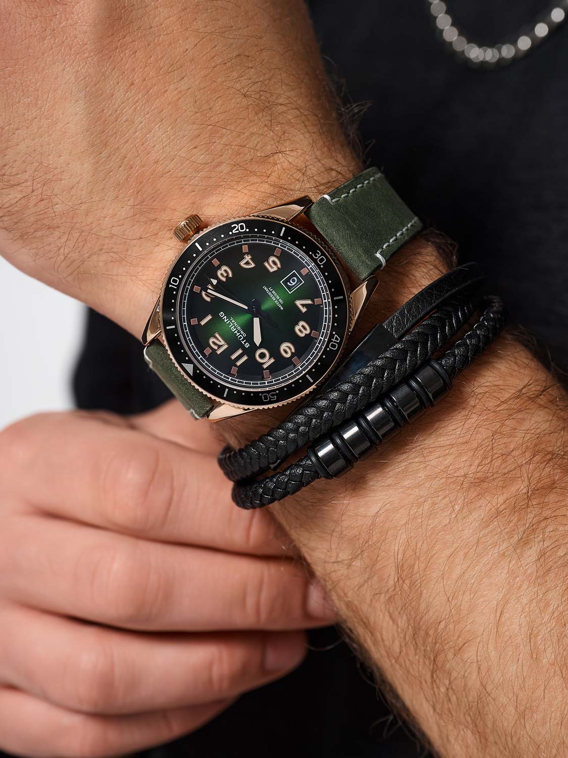 Стильный аксессуар с мужским характером отлично впишется в повседневный образ. Наручные часы с круглым корпусом Udine. Рифленый безель вращается в одном направлении. Циферблат выполнен по технологии Sunray (солнечные лучи). Накладные метки в виде арабских цифр. Окошко даты находится в положении 6 часов. Завинчивающиеся задняя крышка и рифленая заводная головка. Ремешок с классической застежкой.
