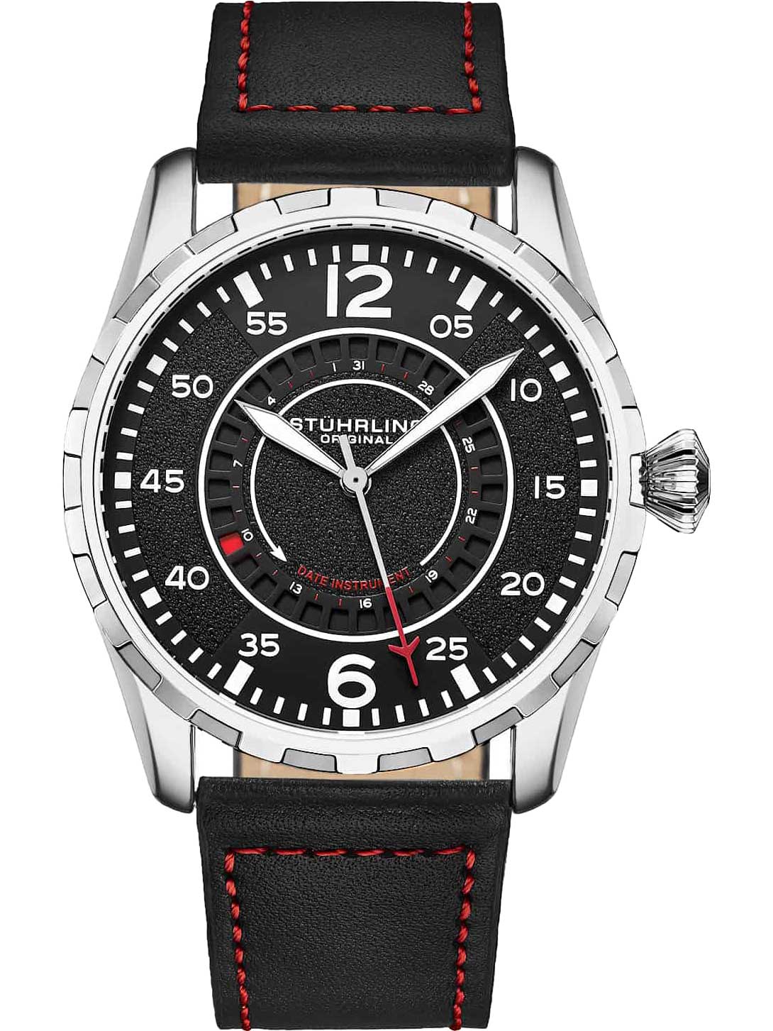 Эти надежные часы не позволят вам потеряться в стремительном потоке времени. Aviator. Мужские часы. Метки в виде арабских цифр и штрихов. Число отображается на центральном круге. Завинчивающаяся задняя крышка. Рифленая заводная головка. Ремешок с классической застежкой.