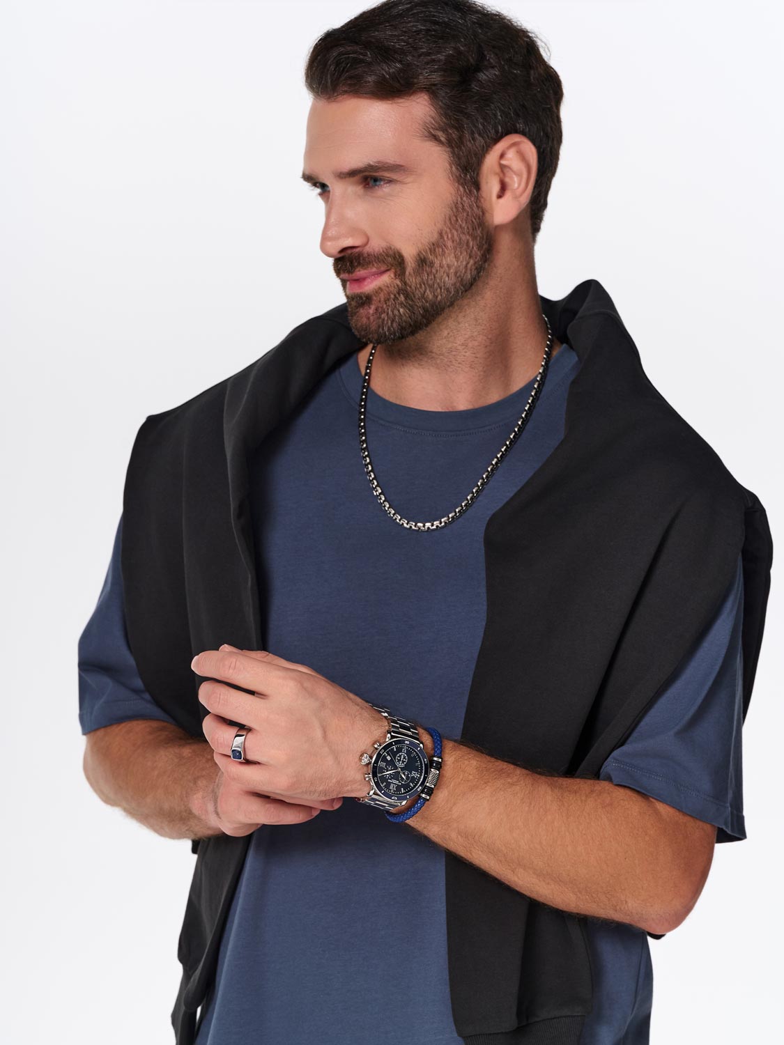 Функциональный дизайн часов вдохновит ваше воображение и поможет по-иному взглянуть на многие моменты обычных будней. Мужские часы-хронограф в круглом корпусе DualMode. Метки в виде штрихов и римских цифр. Окошко даты. Рифленая заводная головка. Стальной браслет.