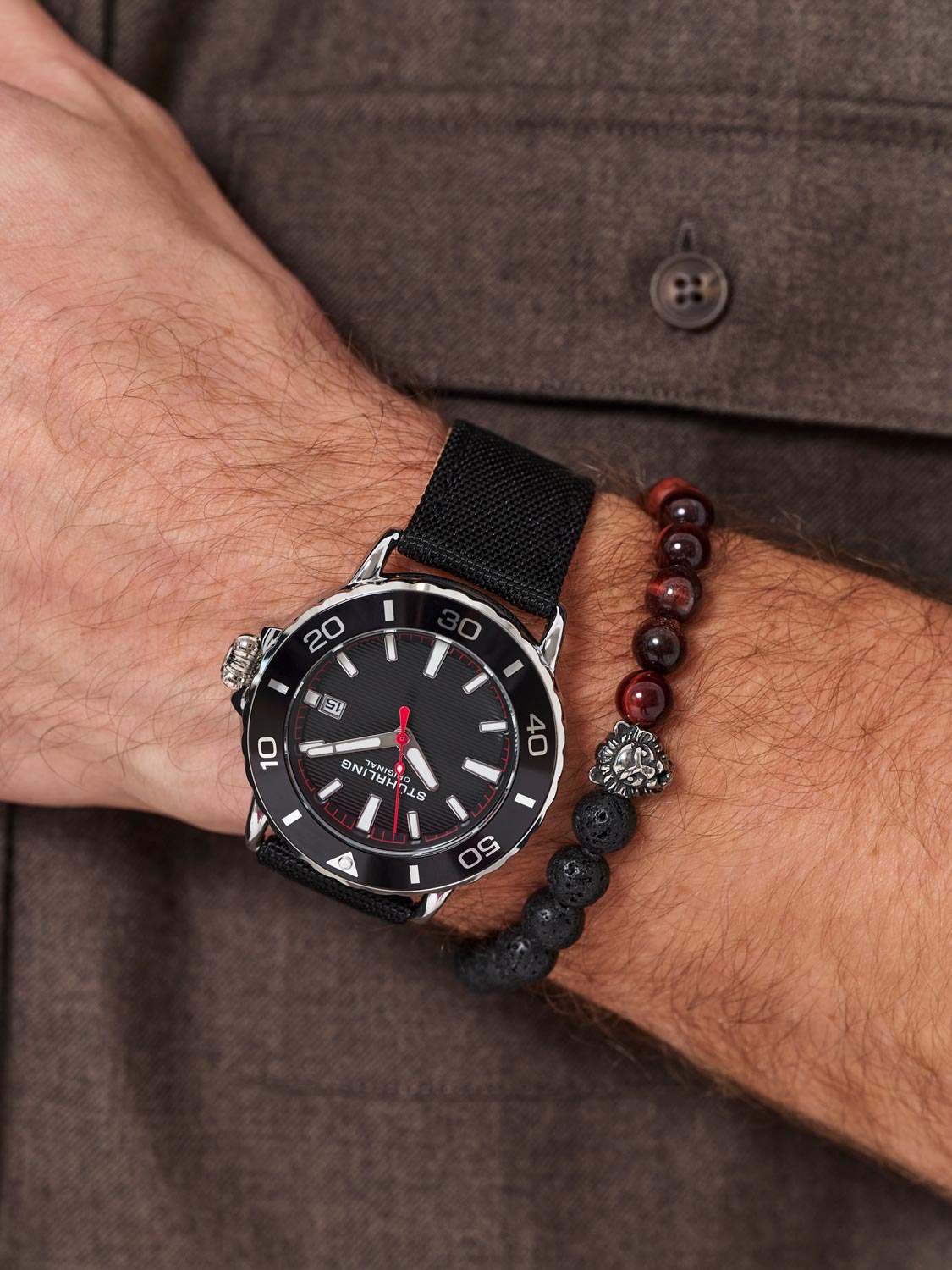 Практичный аксессуар, созданные для искателей приключений. Мужские кварцевые дайверские часы Voyager Precision Navigator. Круглый корпус. Циферблат украшен текстурным рисунком в полоску. Метки в виде штрихов. Окошко даты находится в положении 3 часа. Нейлоновый ремешок.