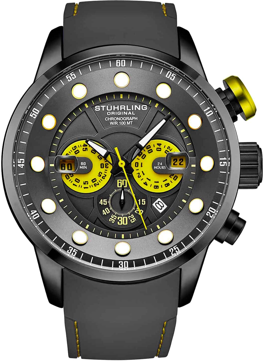 Этот хронограф - воплощение современного дизайна и функциональной элегантности, отлично подходит как для офиса, так и для морских глубин, что делает его подходящим спутником во всех ваших повседневных делах или приключениях. Мужские часы-хронограф с секундомером Aquatic Force. Циферблат с метками в виде точек и минутной шкалой. Метки и стрелки с люминесцентным покрытием, которое светится в темноте после непродолжительной зарядки на свету. 12-ти и 24-х часовой формат времени. Удобный и долговечный каучуковый ремешок с классической застежкой.