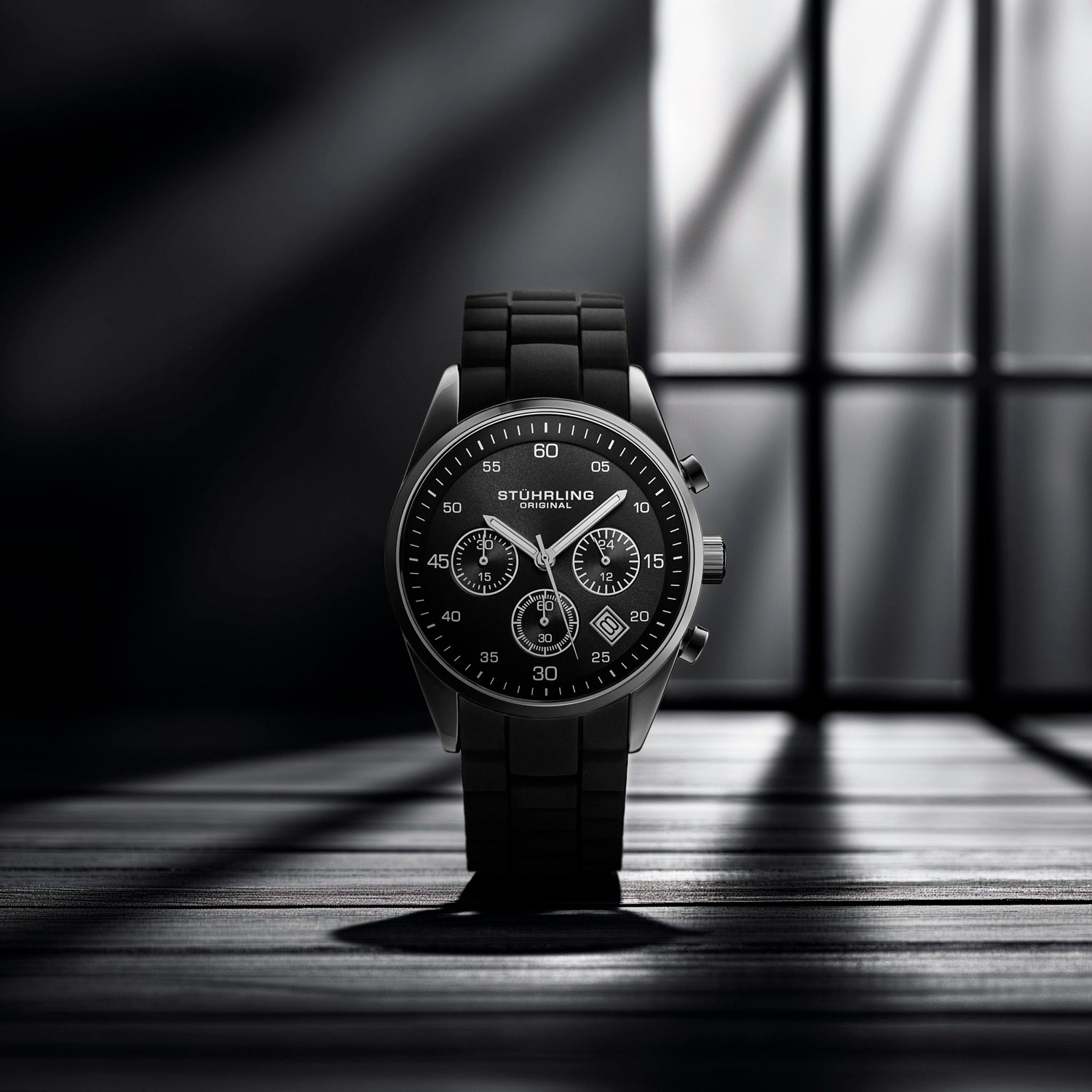Этот стильный хронограф - воплощение элегантности, где каждая деталь отражает характер, стиль и безупречный вкус их обладателя. Мужские часы-хронограф с секундомером Tempo. Циферблат с минутной шкалой выполнен по технологии Sunray (солнечные лучи). Стрелки с люминесцентным покрытием, которое светится в темноте после непродолжительной зарядки на свету. 12-ти и 24-х часовой формат времени. Окошко даты находится в положении между отметками 4 и 5 часов. Рифленая заводная головка. Силиконовый ремешок с классической застежкой.