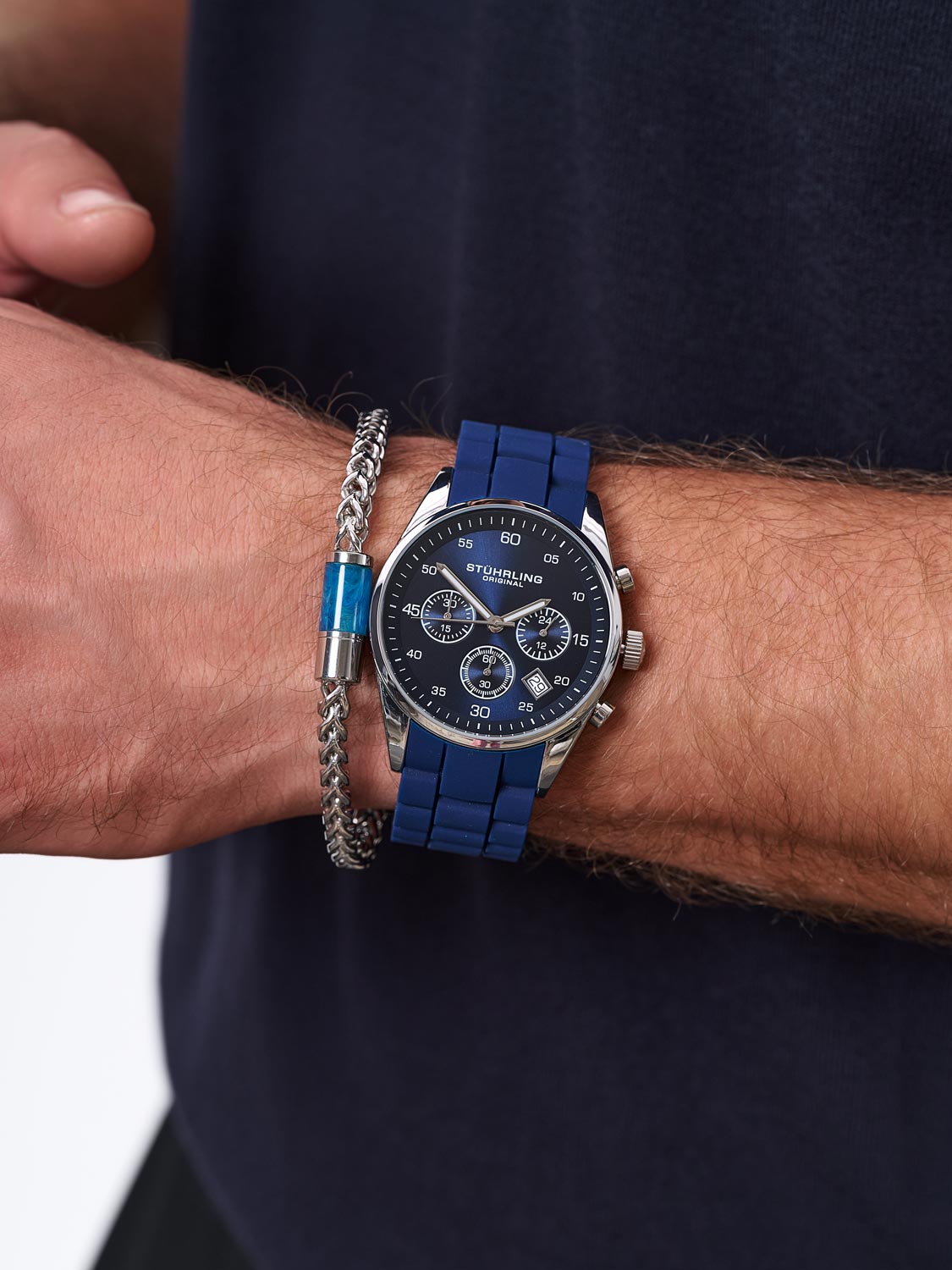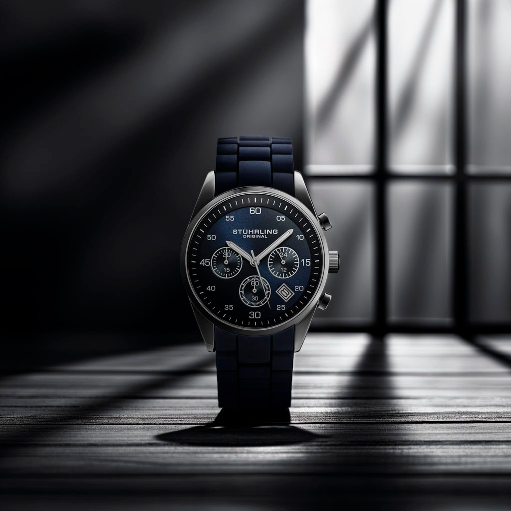 Этот стильный хронограф - воплощение элегантности, где каждая деталь отражает характер, стиль и безупречный вкус их обладателя. Мужские часы-хронограф с секундомером Tempo. Циферблат с минутной шкалой выполнен по технологии Sunray (солнечные лучи). Стрелки с люминесцентным покрытием, которое светится в темноте после непродолжительной зарядки на свету. 12-ти и 24-х часовой формат времени. Окошко даты находится в положении между отметками 4 и 5 часов. Рифленая заводная головка. Силиконовый ремешок с классической застежкой.