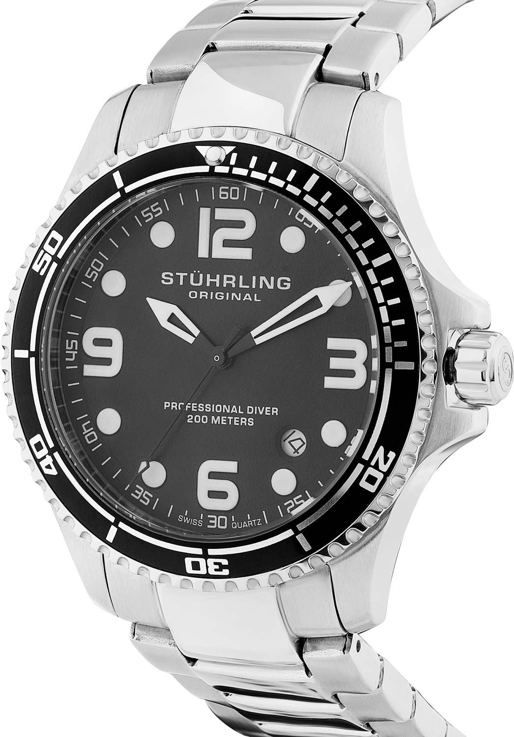 Современный дизайн в функциональном исполнении превращает эти практичные часы в незаменимую деталь стильного мужского образа. Grand Regatta. Безель вращается в одном направлении. Завинчивающаяся заводная головка с защитой. Завинчивающаяся задняя крышка украшена гравировкой Stuhrling. Браслет с раскладывающейся застежкой. Застежка с системой блокировки.