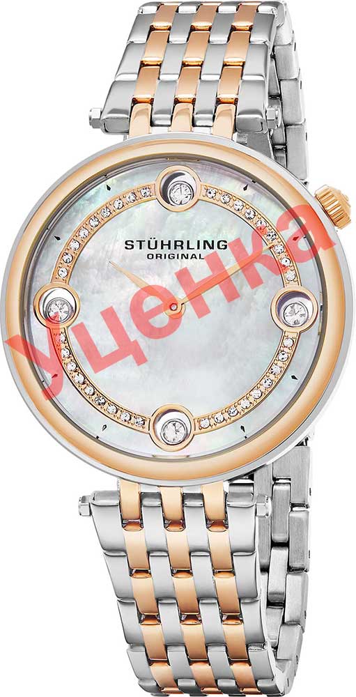 Symphony. Женские часы. Метки в виде точек. Рифленая заводная головка находится в положении 2 часа. Задняя крышка с вставками из стекла Krysterna. Браслет с раскладывающейся застежкой.