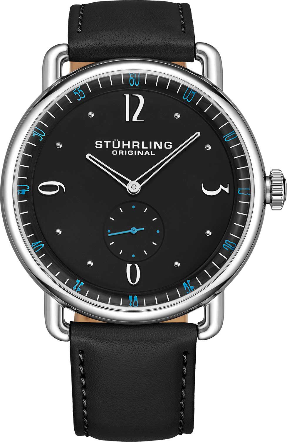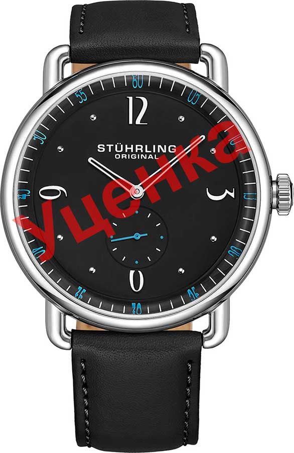 Symphony. Мужские часы. Секундная стрелка вынесена на отдельный циферблат. Метки в виде точек и арабских цифр. Завинчивающаяся задняя крышка украшена гравировкой Stuhrling. Ремешок с классической застежкой.
