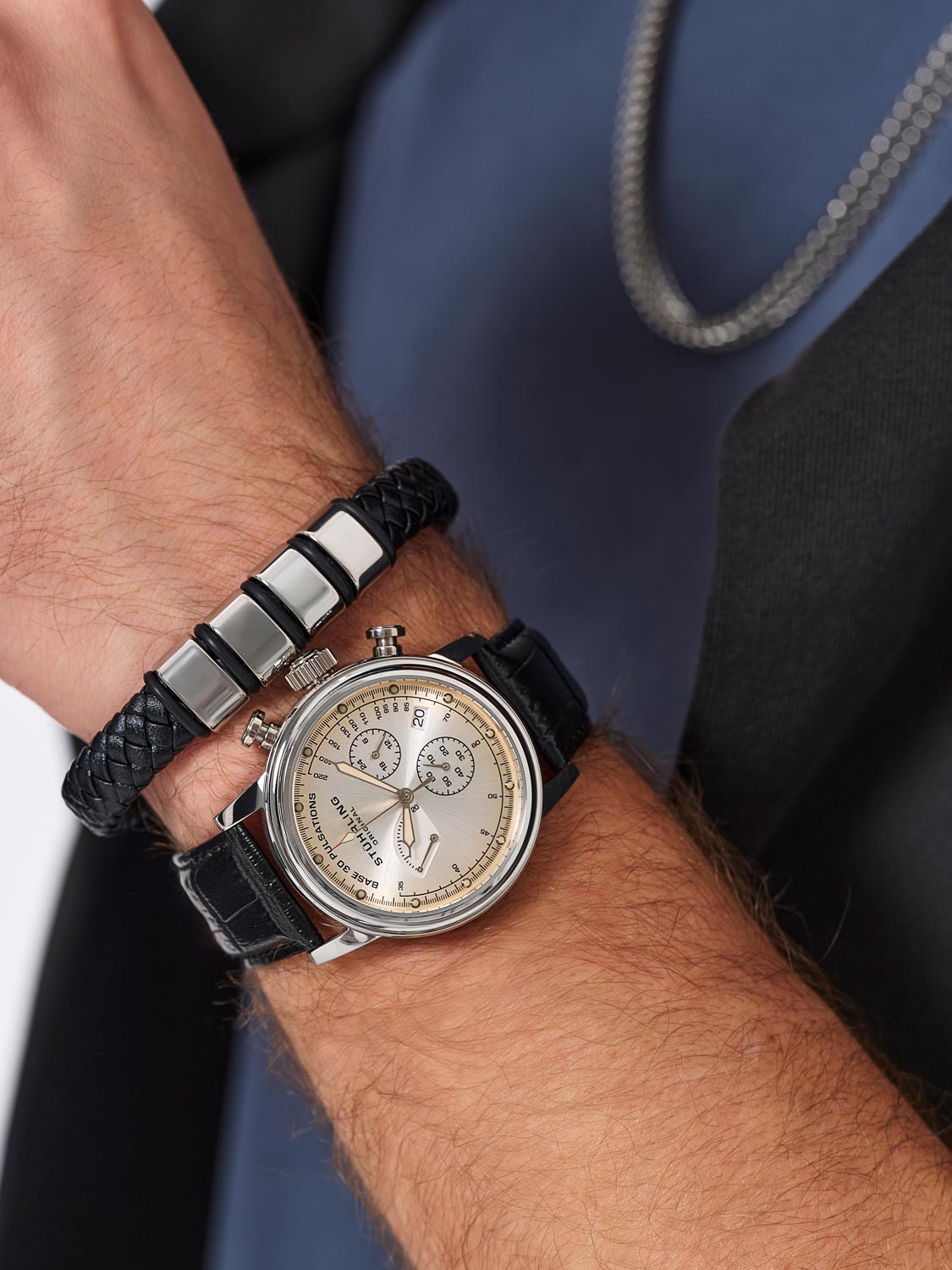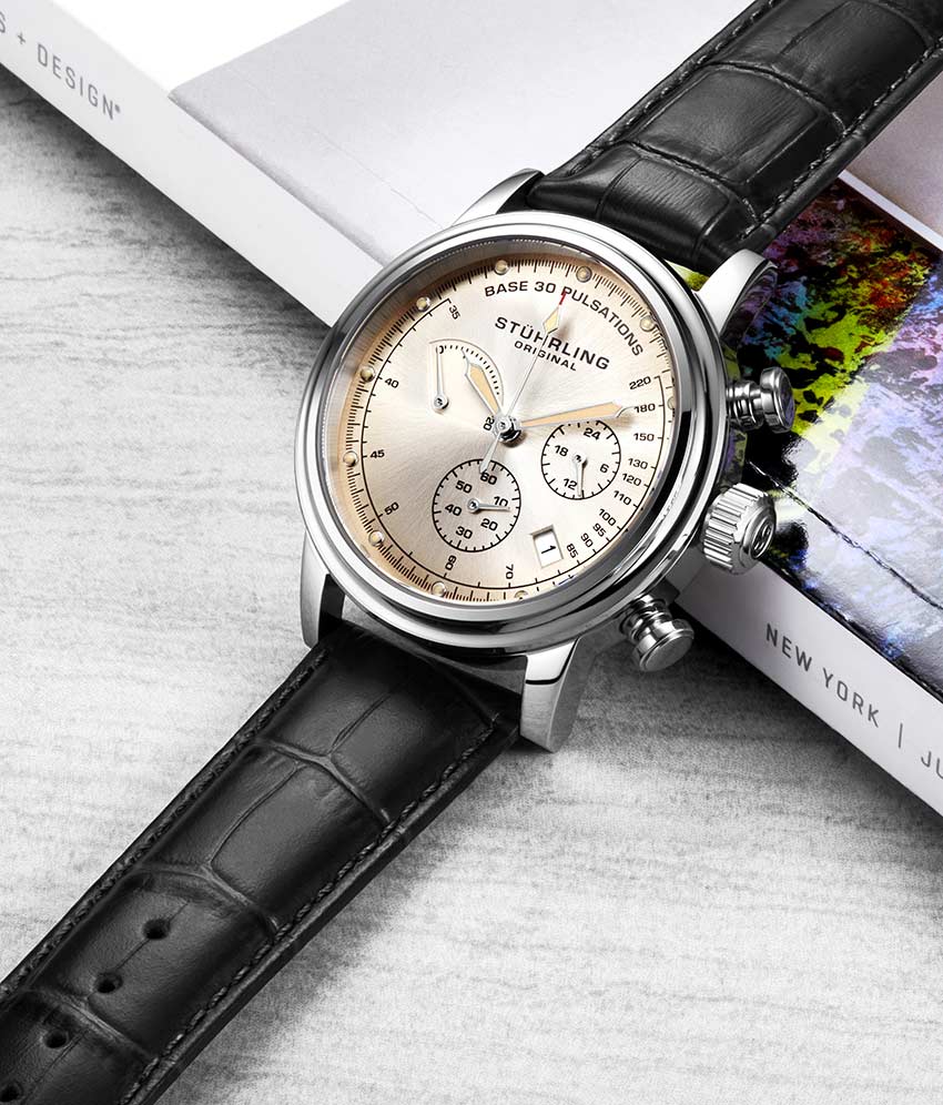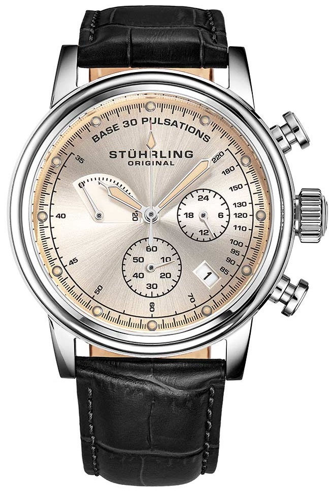 Многофункциональные часы с классическими нотками выбирают стильные и решительные мужчины. Часы-хронограф с секундомером и шкалой пульсометра ChronoPulse. Ретроградный указатель хронографа. 12-ти и 24-х часовой формат времени. Накладные метки в виде точек. Окошко даты. Ремешок с классической застежкой.