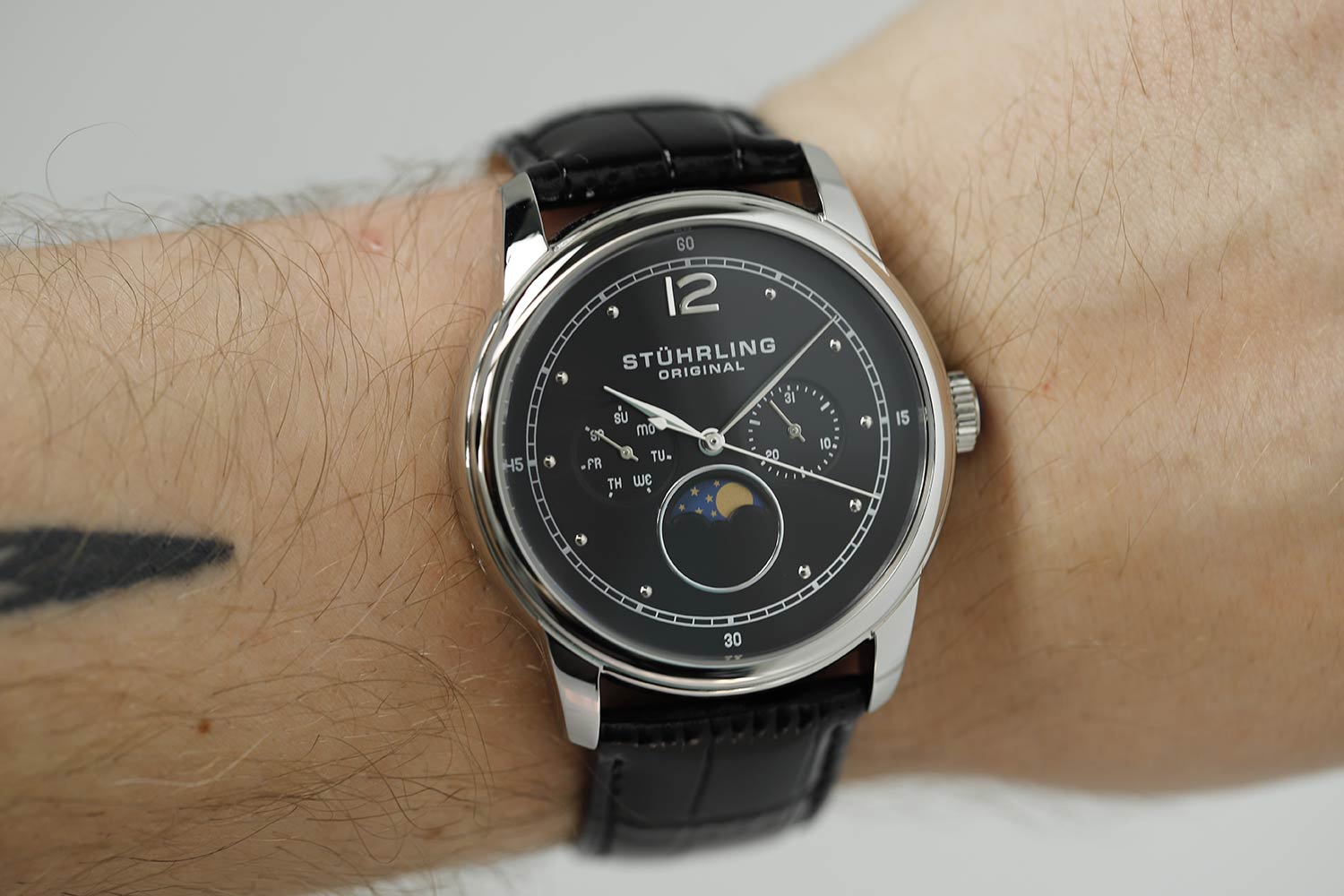 Стильные часы для настоящих мужчин, которые уверенны в себе и своих амбициях. Celestia. Мужские часы. Число и день недели вынесены на отдельные циферблаты. Накладные метки в виде точек. Рифленая заводная головка. Завинчивающаяся задняя крышка украшена гравировкой. Ремешок с классической застежкой.