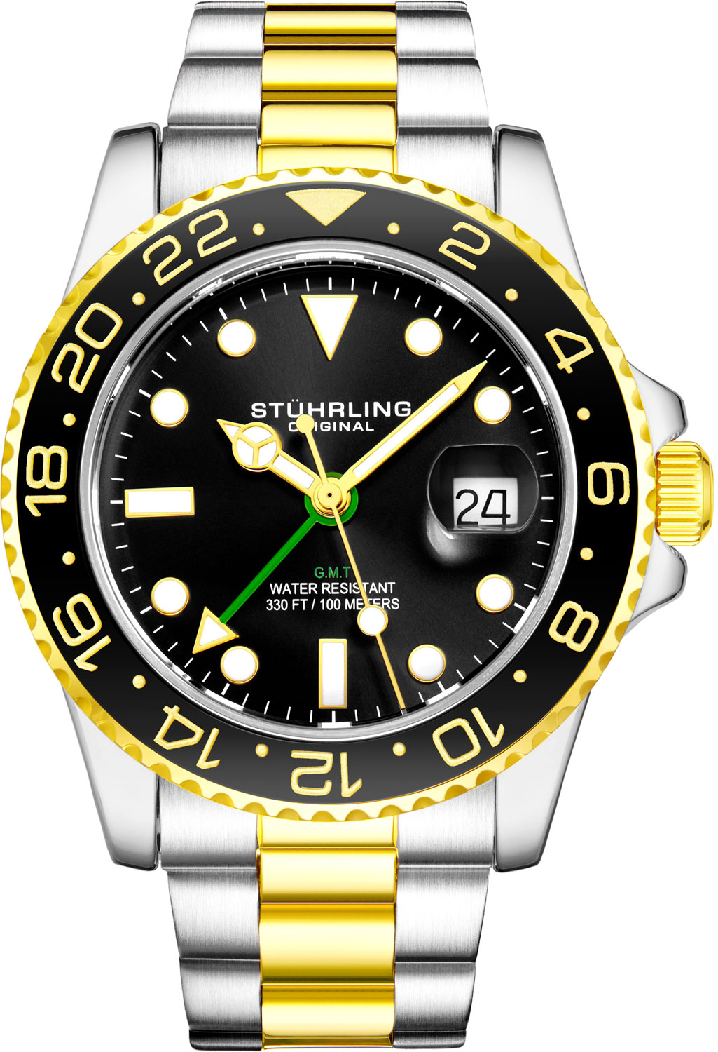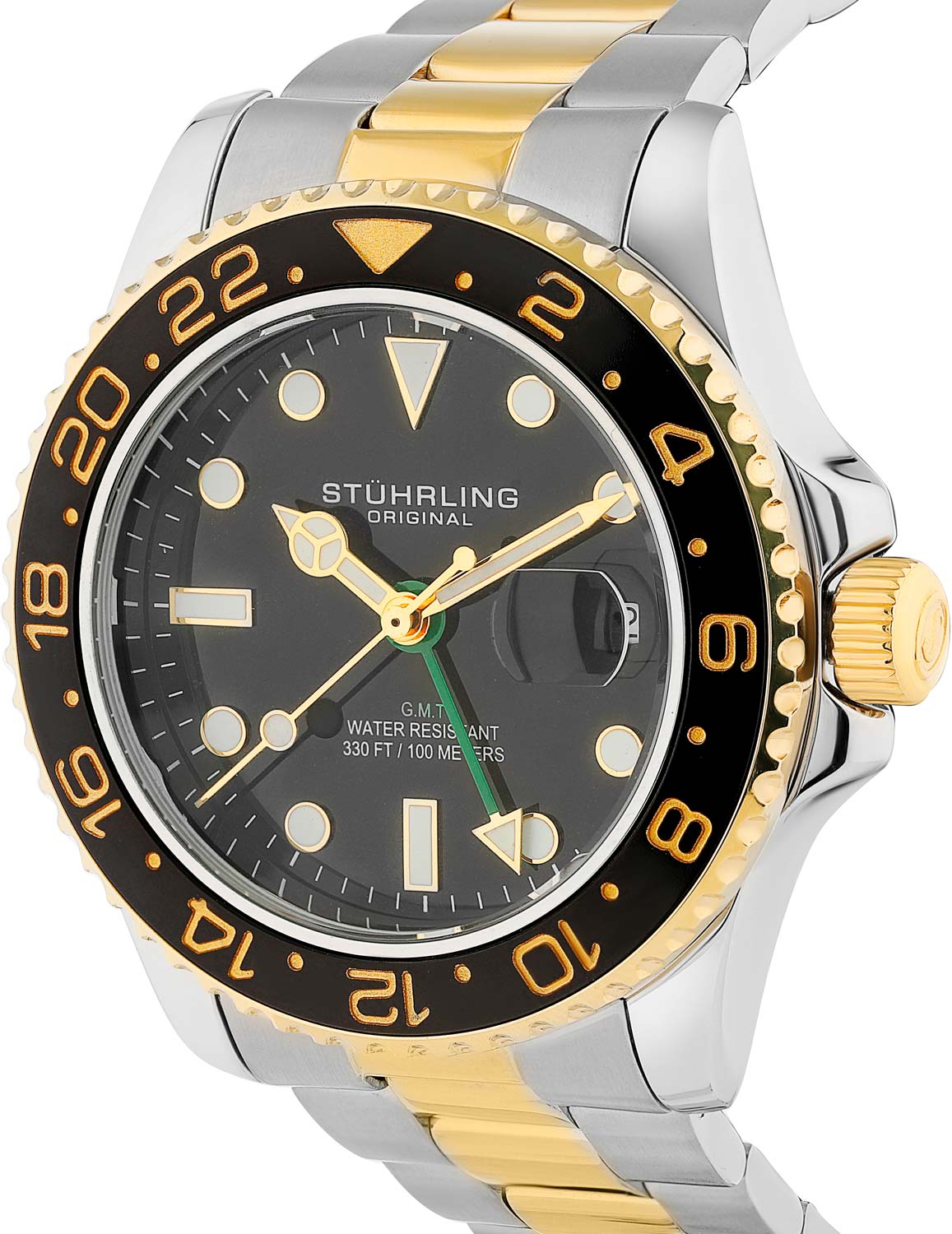 Спортивный дух в любой точке мира - практичные часы для ценителей технологического качества и комфорта. Ambassador. Циферблат выполнен по технологии Sunray (солнечные лучи). Второй часовой пояс в 24-х часовом формате времени, отображается центральной стрелкой. Шкала для второго пояса расположена на безеле. Безель вращается в одном направлении. Окошко даты с увеличительным стеклом в позиции 3 часа. Завинчивающаяся задняя крышка и заводная головка с защитой. Браслет с раскладывающейся застежкой. Застежка с системой блокировки.