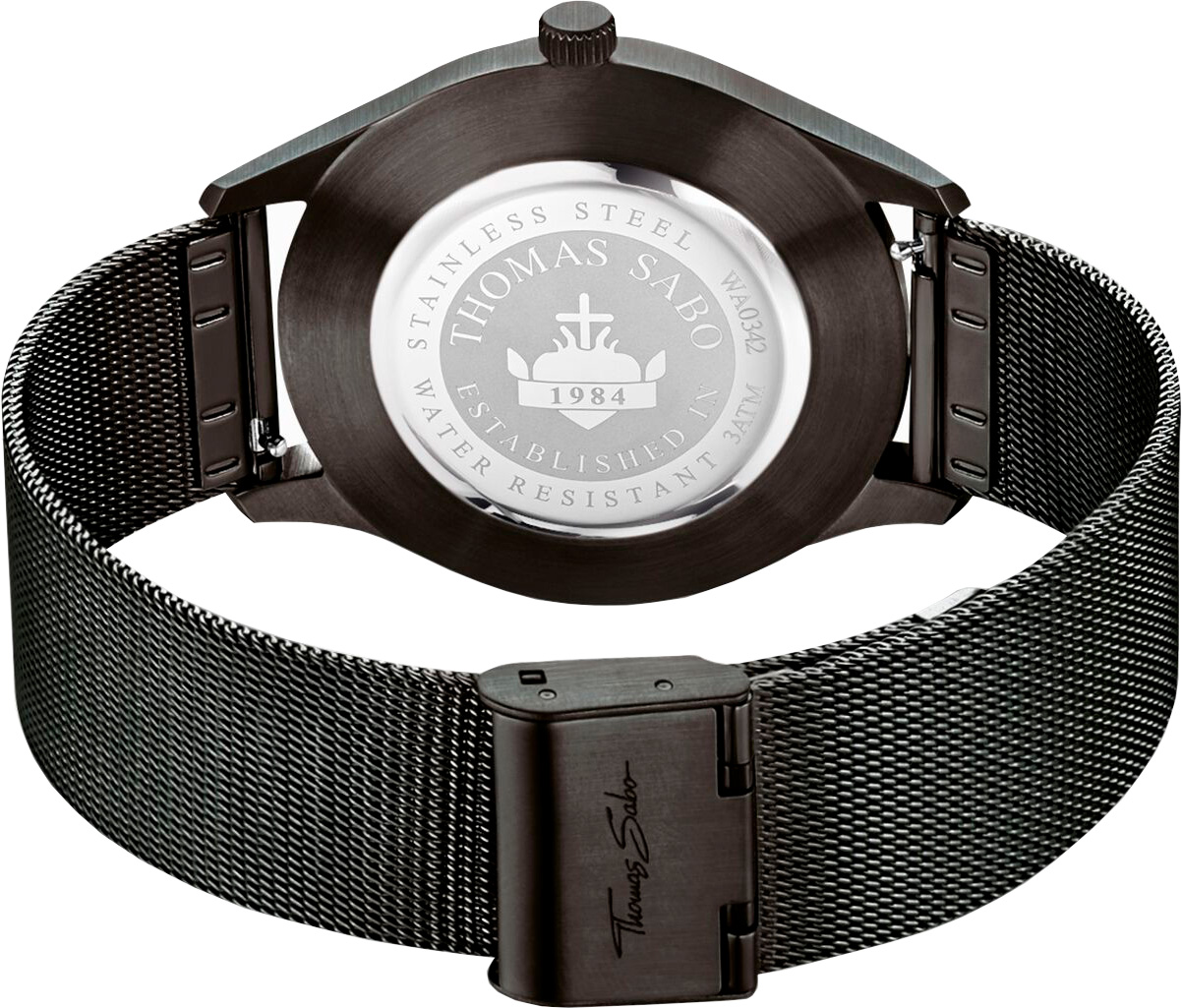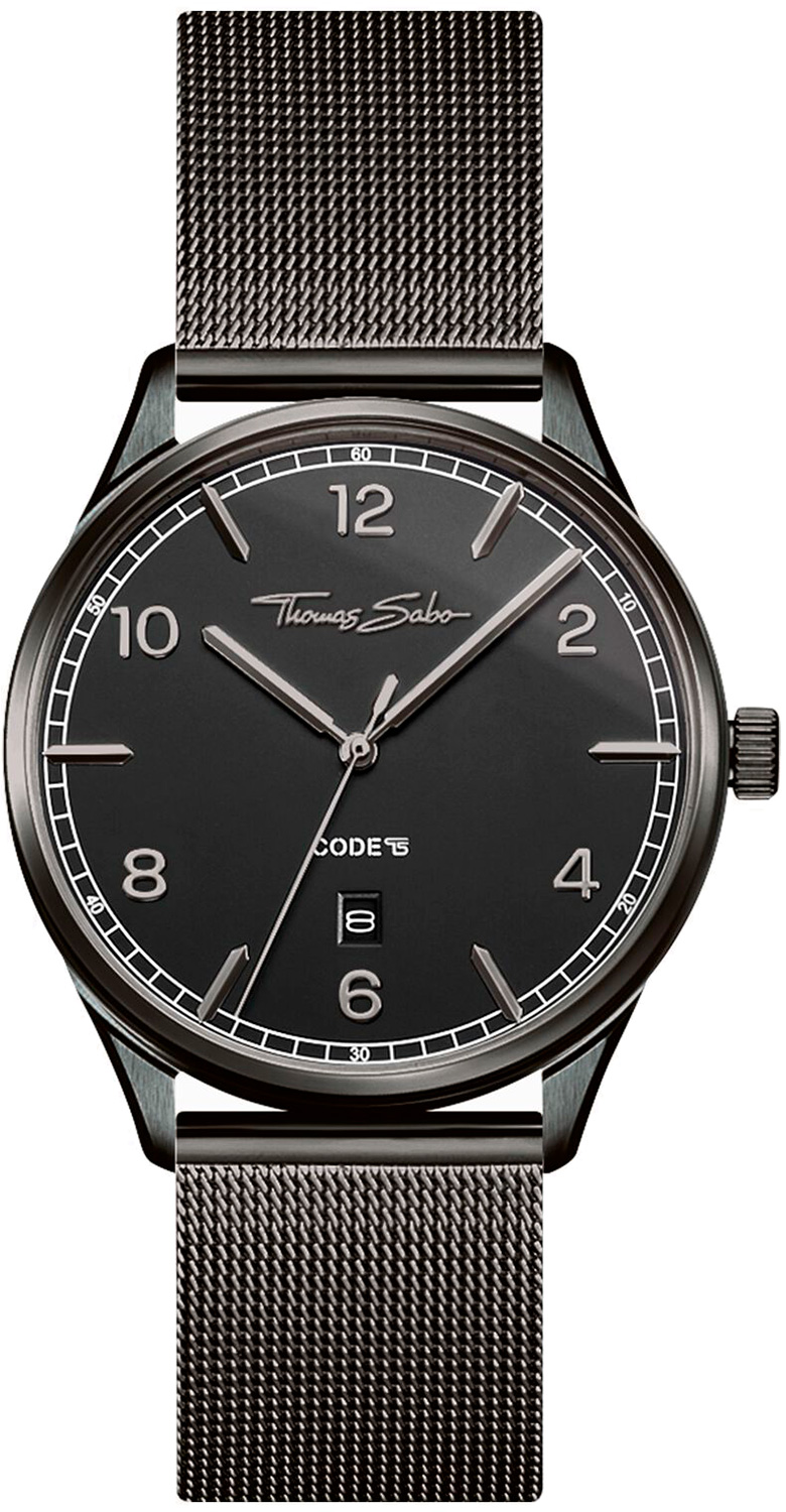 Вневременная универсальность этих часов обусловлена их элегантным и современным видом. Модель отличается характерной эстетикой Thomas Sabo и сочетанием современных функций, ретро-стиль черного циферблата, стрелок и меток вдохновлен классическими мужскими часами 1950-х годов и сегодня представляет собой новый универсальный стиль для него и для нее. Часы унисекс с круглым стальным корпусом с IP покрытием. Циферблат с метками в виде арабских цифр и штрихов. Окошко даты находится в положении 6 часов. Рифленая заводная головка. Браслет миланского плетения с IP покрытием.