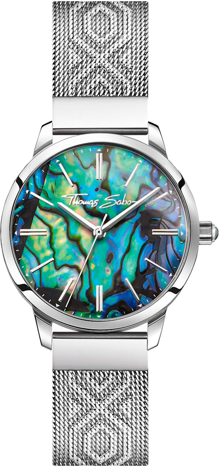Часы, вдохновленные культурой и традициями коренных народов Юго-Запада Америки, представляют собой эффектный повседневный аксессуар. Игра цветов перламутра Абалон на циферблате будоражит воображение своим переливающимся мерцанием. Вдоль корпуса нанесены графические этнические гравюры, эксклюзивно разработанные Thomas Sabo. Этнический стиль продолжается и в миланском браслете с тонкой структурой и тиснением, который делает часы символом вашего стиля и времени. Женские часы Arizona Spirit с круглым стальным корпусом. Циферблат из перламутра Абалон с метками в виде штрихов. Рифленая заводная головка украшена гематитом в форме кабошона. Браслет миланского плетения.