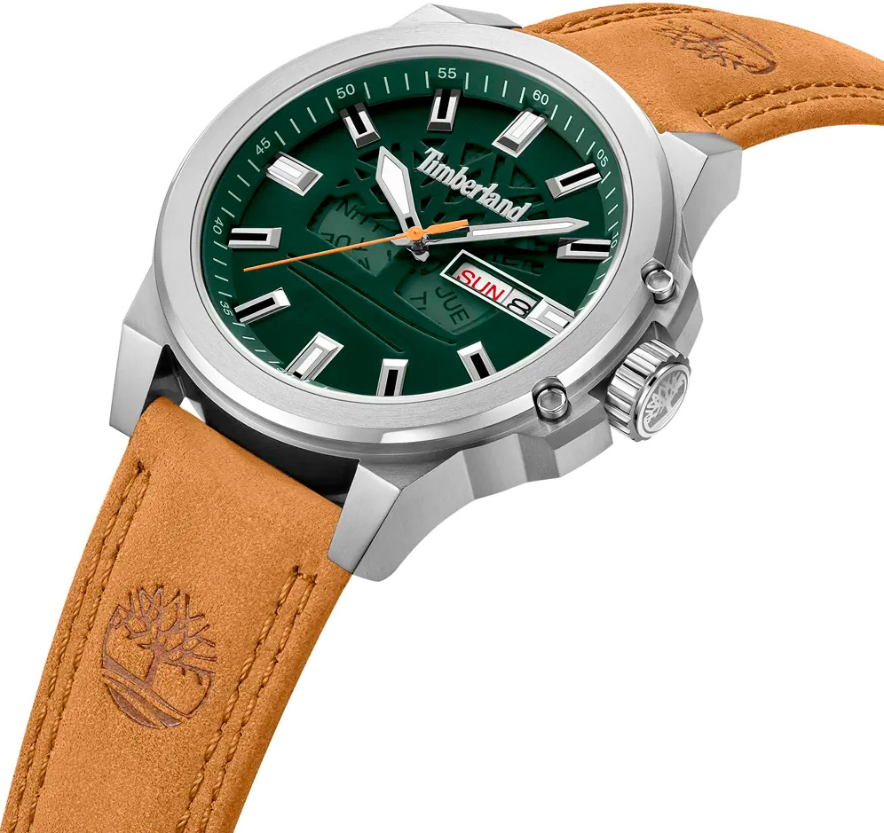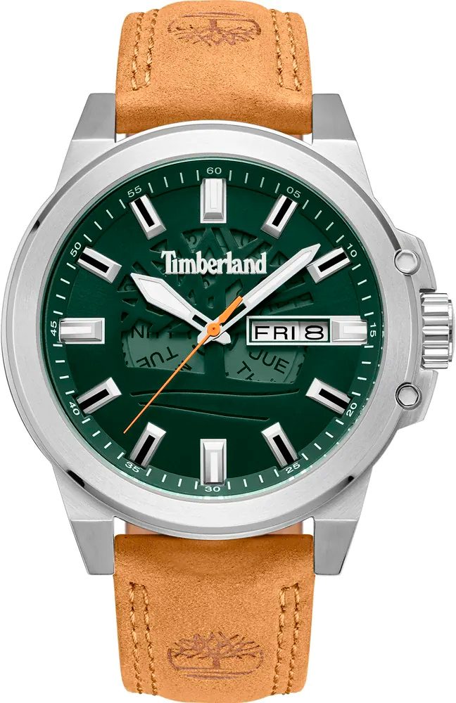 Эти наручные часы станут вашим личным компасом стиля, который всегда указывает на тонкий вкус и внимание к деталям. Мужские кварцевые часы Canfield. Круглый стальной корпус. Сатинированный безель. Циферблат украшен логотипом бренда и защищен минеральным стеклом. По краю циферблата нанесена минутная шкала. Накладные метки в виде штрихов. Мечевидные стрелки в стиле Sword. Метки и стрелки с люминесцентным покрытием, которое светится в темноте после непродолжительной зарядки на свету. Окошко даты и дня недели находится в положении 3 часа. Рифленая заводная головка с защитой и завинчивающаяся задняя крышка украшены фирменным логотипом компании Timberland. Текстурированный ремешок из натуральной телячьей кожи с классической застежкой и системой быстрой замены.