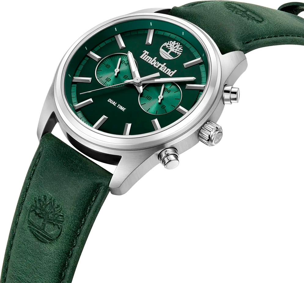 Эти дизайнерские часы с надежным механизмом - не просто способ узнавать время, это способ заявить о себе и своем стиле. Мужские кварцевые часы Northbridge. Круглый стальной корпус. Циферблат украшен логотипом бренда в положении 12 часов и защищен минеральным стеклом. Накладные метки в виде штрихов. 12-ти и 24-х часовой формат времени. Второй часовой пояс. Стрелки с люминесцентным покрытием, которое светится в темноте после непродолжительной зарядки на свету. Рифленая заводная головка и завинчивающаяся задняя крышка украшены фирменным логотипом компании Timberland. Текстурированный ремешок из натуральной телячьей кожи с классической застежкой и системой быстрой замены.