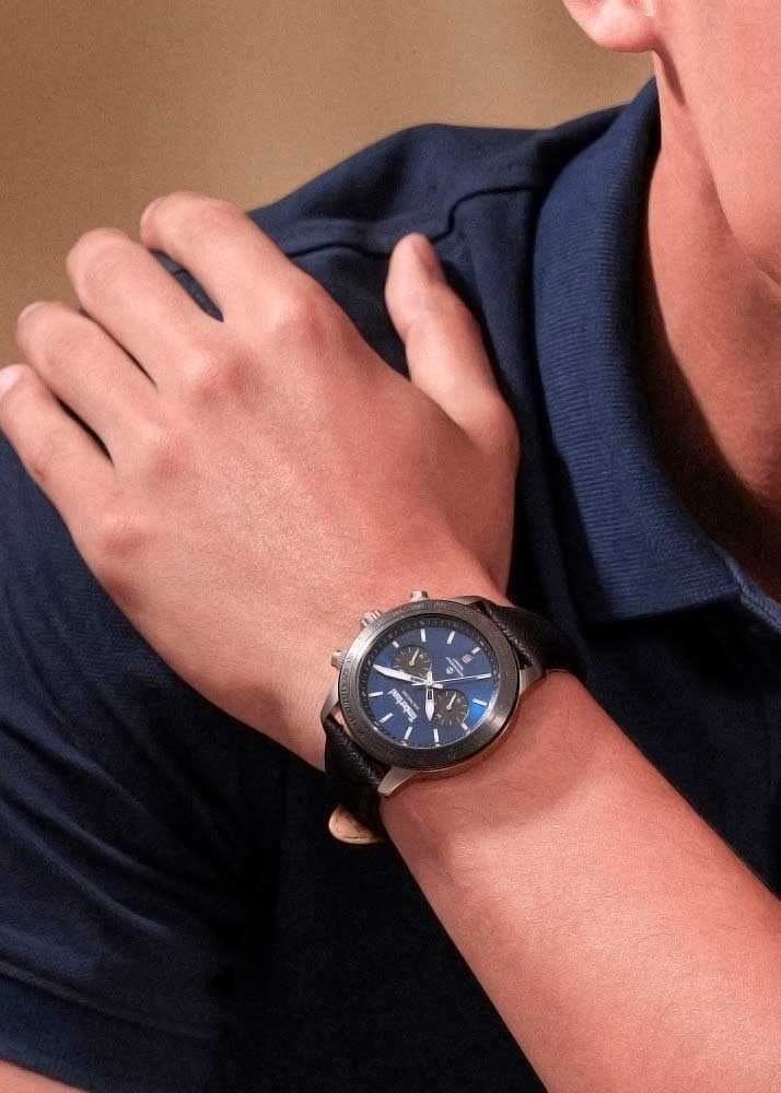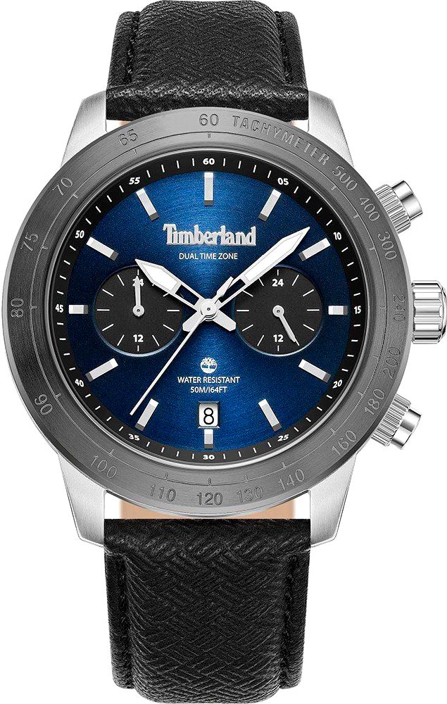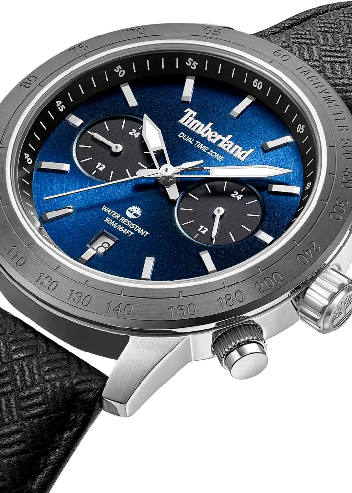 12-ти и 24-х часовой формат времени. Второй часовой пояс. Рифленая заводная головка и завинчивающаяся задняя крышка украшены фирменным логотипом компании Timberland. Кожаный ремешок с классической застежкой и системой быстрой замены.