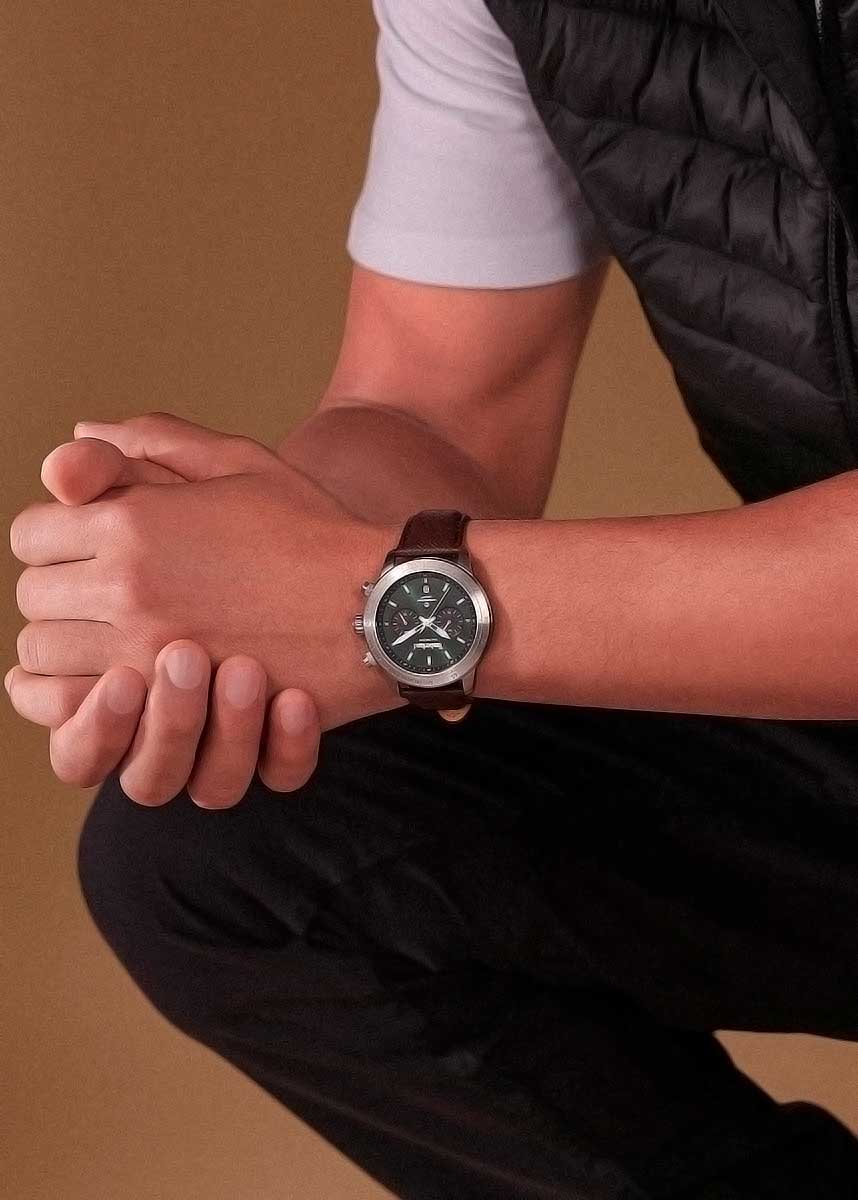 12-ти и 24-х часовой формат времени. Второй часовой пояс. Рифленая заводная головка и завинчивающаяся задняя крышка украшены фирменным логотипом компании Timberland. Кожаный ремешок с классической застежкой и системой быстрой замены.