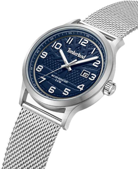 Не пропустите стильный аксессуар от Timberland, в дизайне которого угадывается выразительность и подчеркнутая элегантность. Наручные мужские часы. Круглый стальной корпус. Гильошированный циферблат украшен объемным логотипом бренда. Метки в виде арабских цифр. Окошко даты находится в положении 3 часа. Рифленая заводная головка с узнаваемым логотипом бренда. Браслет миланского плетения.