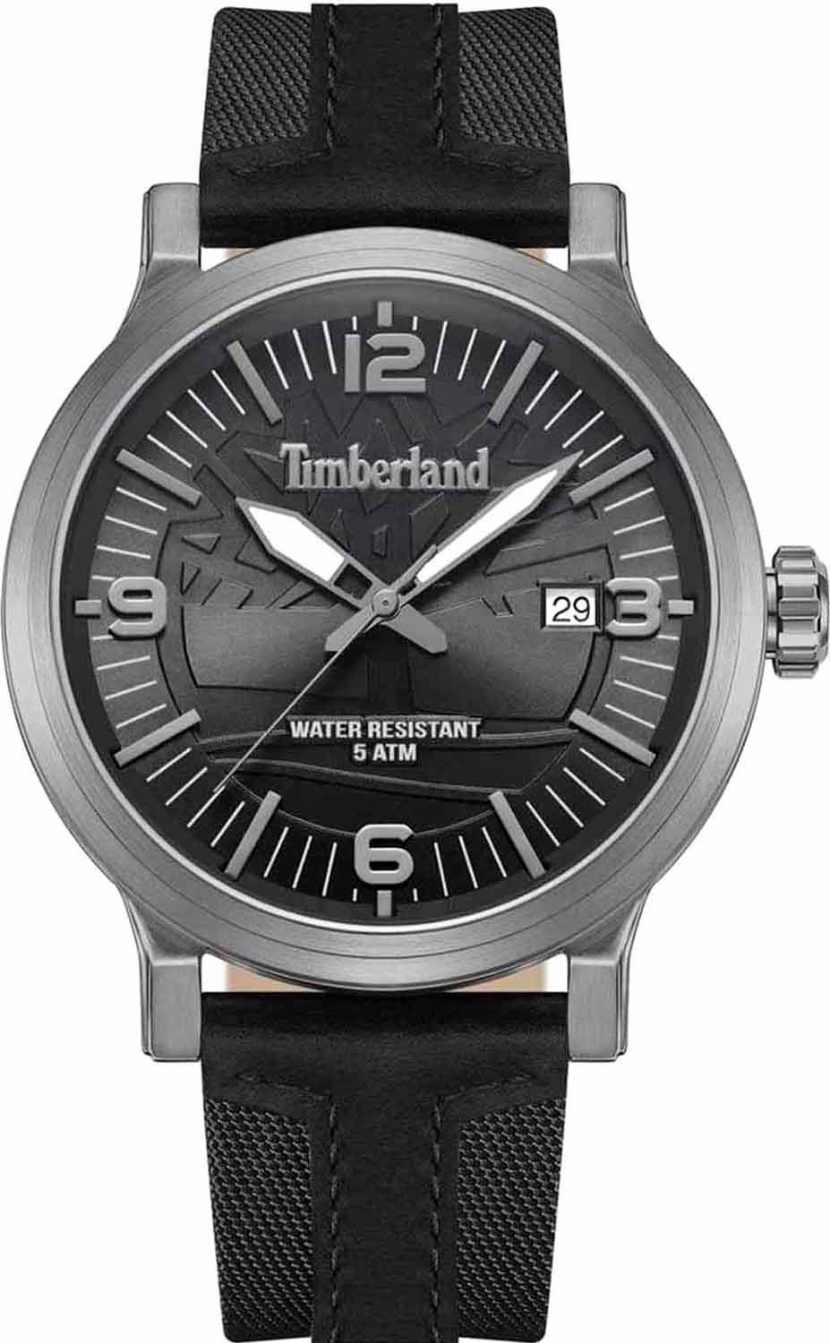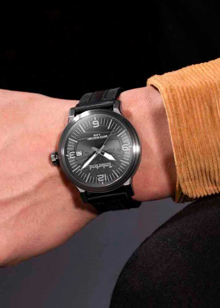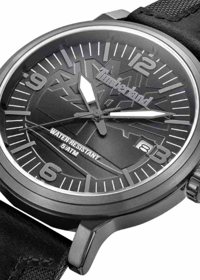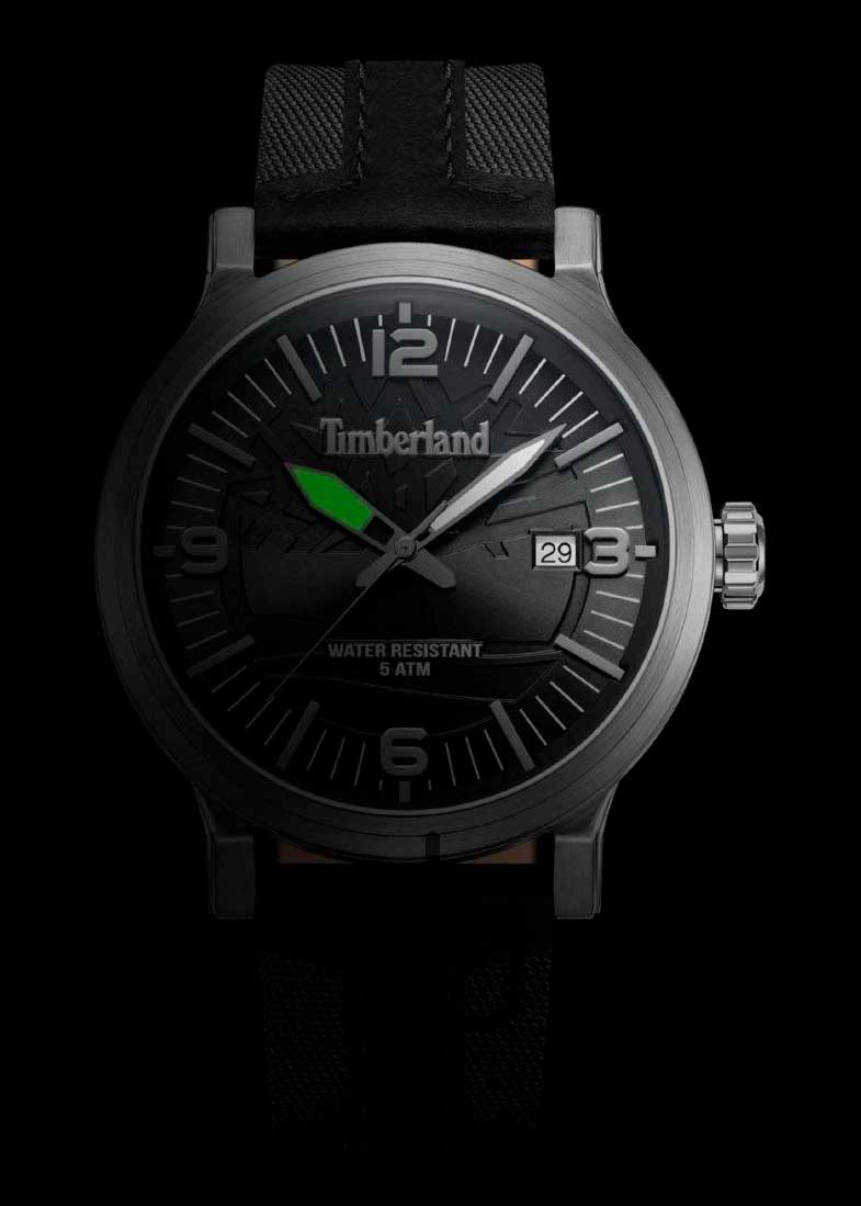 Окошко даты находится в положении 3 часа. Рифленая заводная головка и завинчивающаяся задняя крышка украшены фирменным логотипом компании Timberland. Ремешок из натуральной телячьей кожи с классической застежкой и системой быстрой замены.