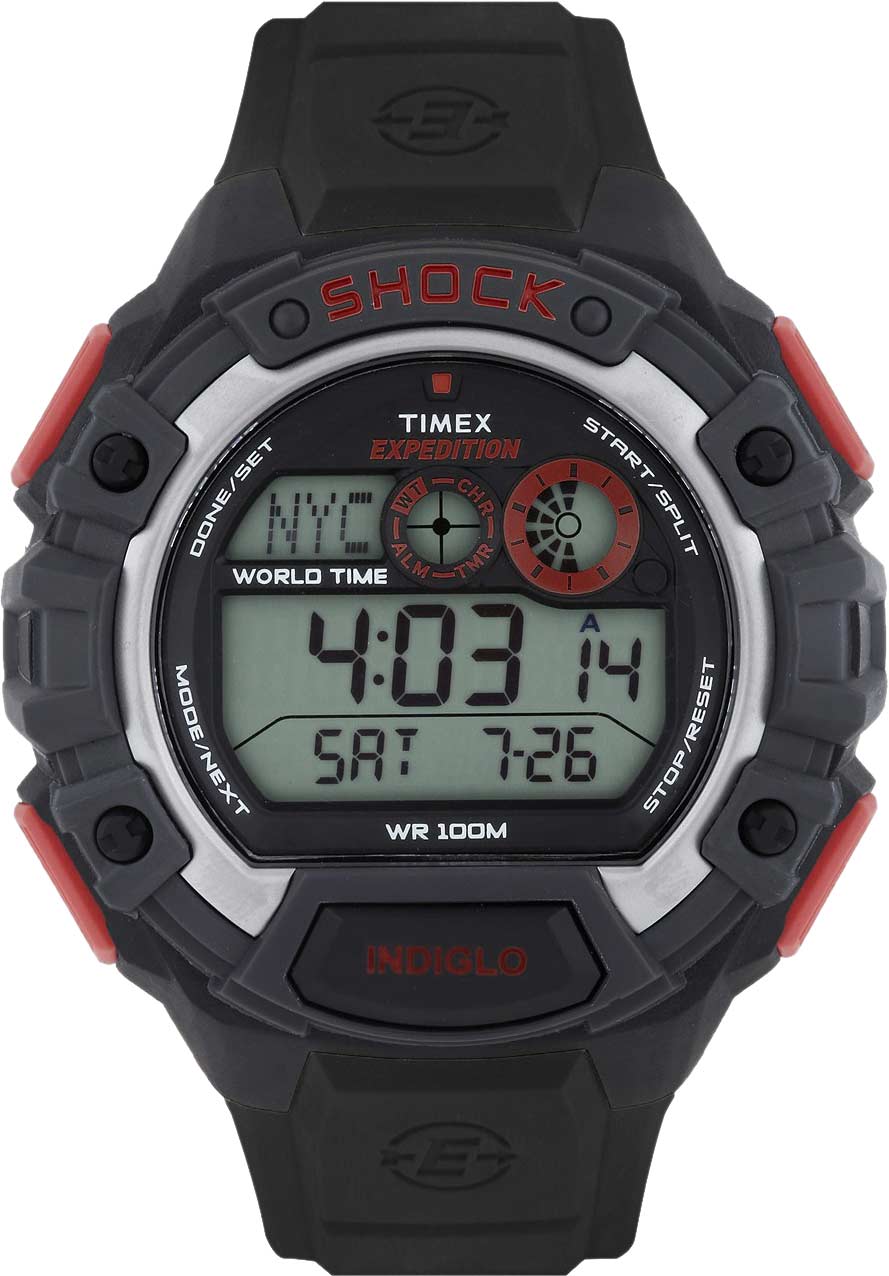 Цифровое время в ударопрочном облачении для уверенных в себе мужчин. Expedition World Shock. Сплит-хронограф на 100ч, с памятью на 30 кругов. Таймер обратного отсчета до 24ч. Мировое время. Противоударный корпус из пластика. Задняя крышка крепится на 4 винтах. Удобный пластиковый ремешок с классической застежкой.