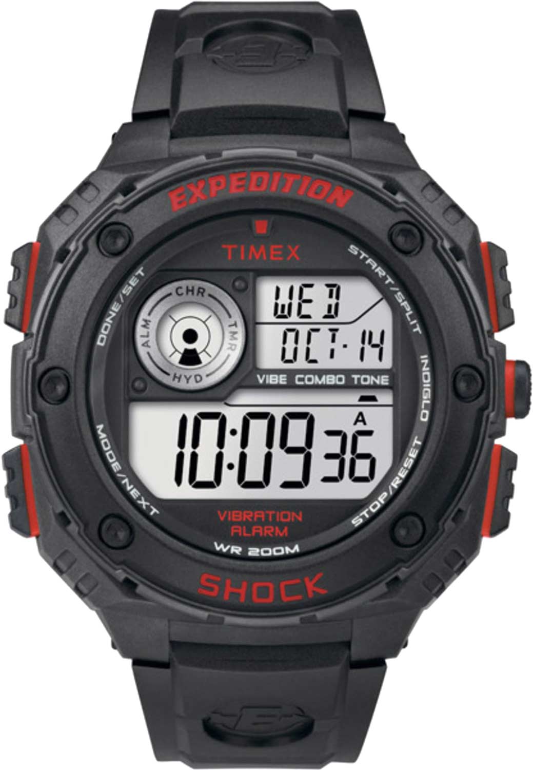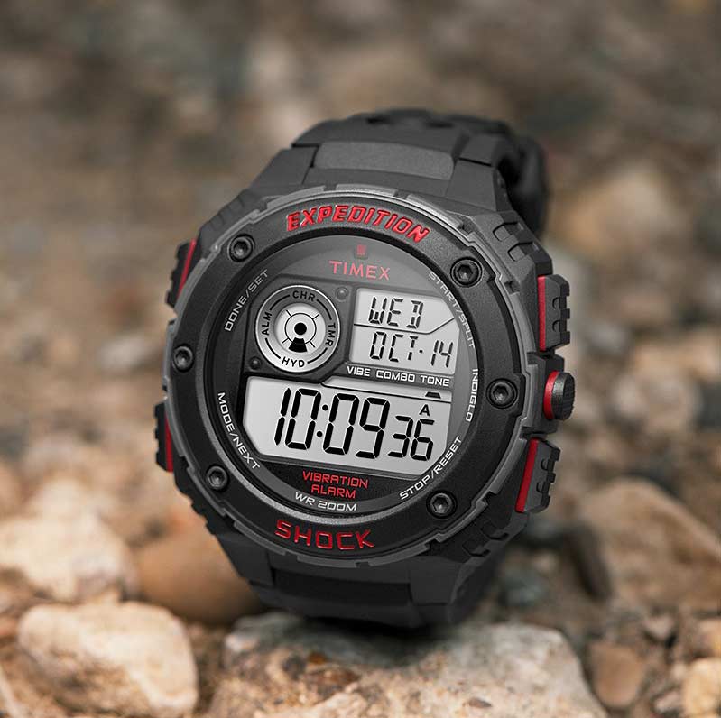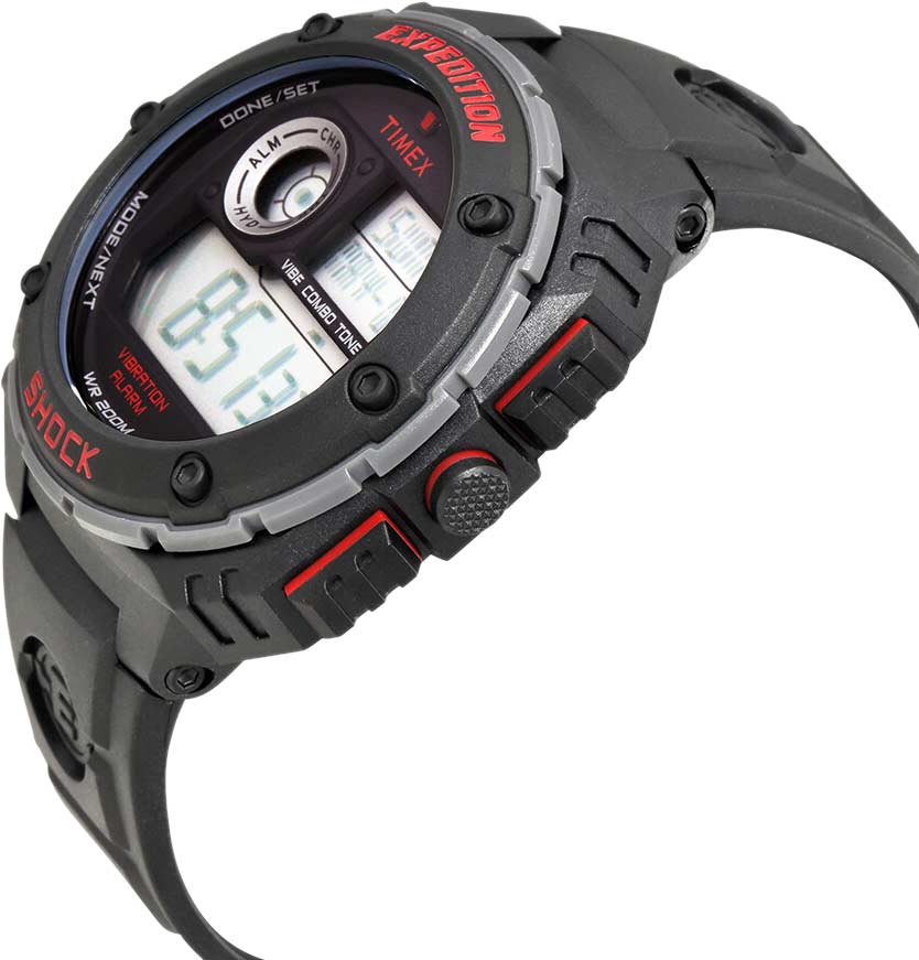 Ультрасовременный дизайн станет еще одним аргументом в пользу этого аксессуара. Отличный вариант для спорта и отдыха. Expedition Vibe Shock. Сплит-хронограф на 100ч, с памятью на 30 кругов. Таймер обратного отсчета до 24ч. 3 часовых пояса. Противоударный корпус из пластика. Задняя крышка крепится на 4 винтах. Удобный пластиковый ремешок с классической застежкой.