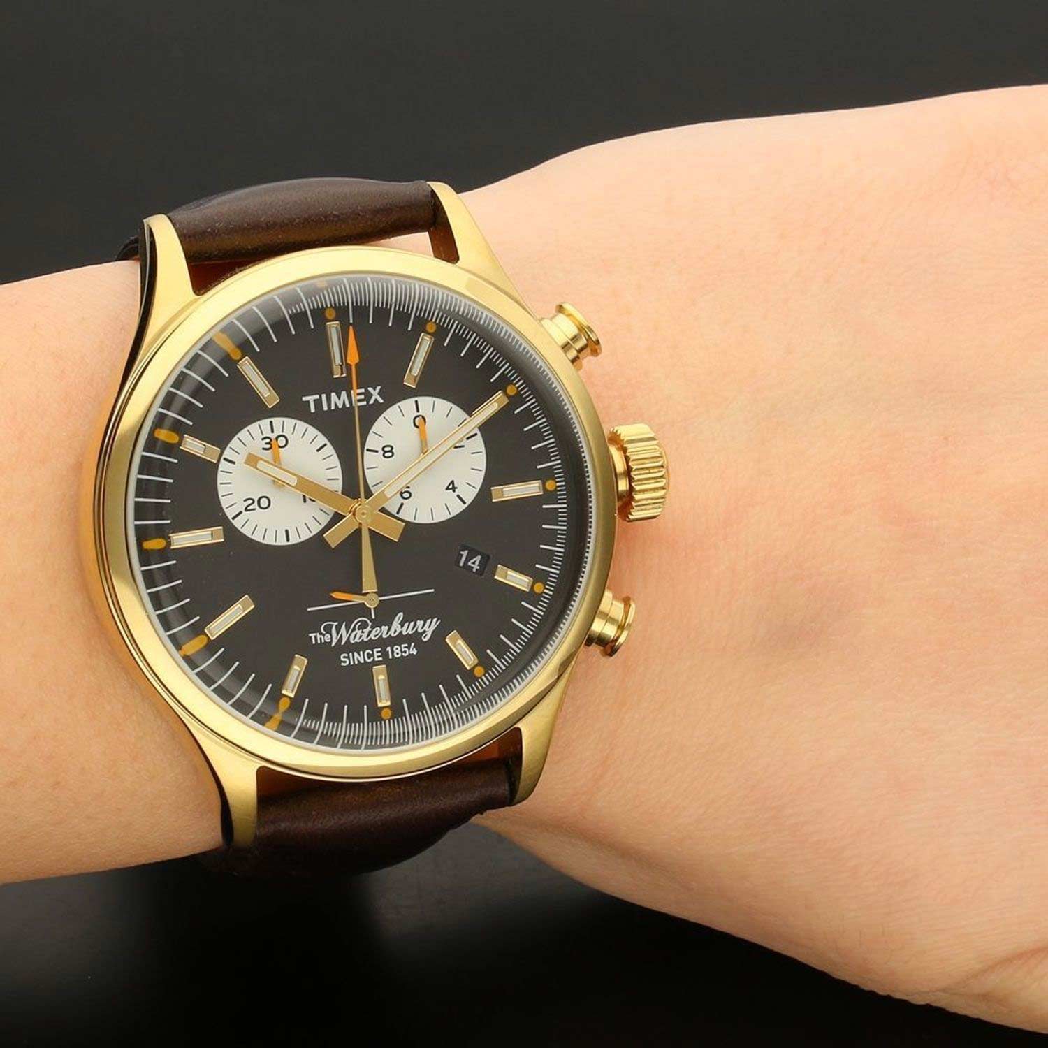Выразительный дизайн этого мужского аксессуара станет отправной точкой стильного образа на каждый день. The Waterbury Chronograph. Часы-хронограф с секундомером точностью 1/20с. Круглый стальной корпус. Циферблат с метками в виде штрихов. Окошко даты находится в положении 4 часа. Рифленая заводная головка. Кожаный ремешок с классической застежкой.