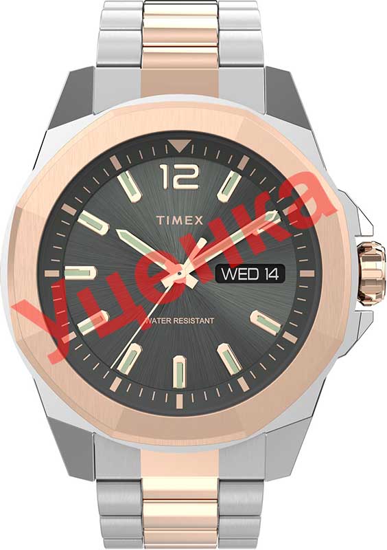 Уценка. Царапины на корпусе, дефект покрытия. Кварцевые оригинальные наручные часы. Круглый латунный корпус с минеральным стеклом. Восьмигранный безель. Циферблат выполнен по технологии Sunray (солнечные лучи). Заостренные прямоугольные стрелки в стиле Baton. Метки в виде штрихов, 12-ти часовая метка в виде арабской цифры. Метки и стрелки с люминесцентным покрытием, которое светится в темноте после непродолжительной зарядки на свету. Двойное окошко даты и дня недели находится в положении 3 часа. Рифленая заводная головка с защитой. Надежный стальной браслет с раскладывающейся застежкой.