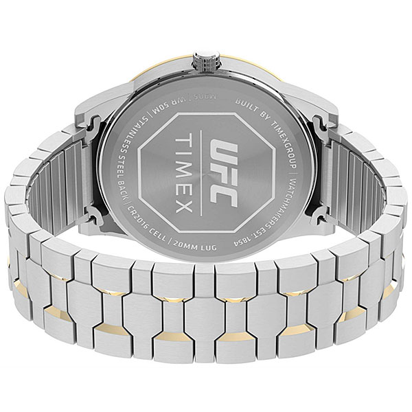Практичные часы отлично подойдут для повседневного общения со временем. Кварцевые мужские часы UFC Legend. Стрелки с люминесцентным покрытием, которое светится в темноте. Метки в виде арабских цифр и штрихов. Окошко даты находится в положении 3 часа. Рифленая заводная головка. Удобный стальной растягивающийся браслет без застежки.