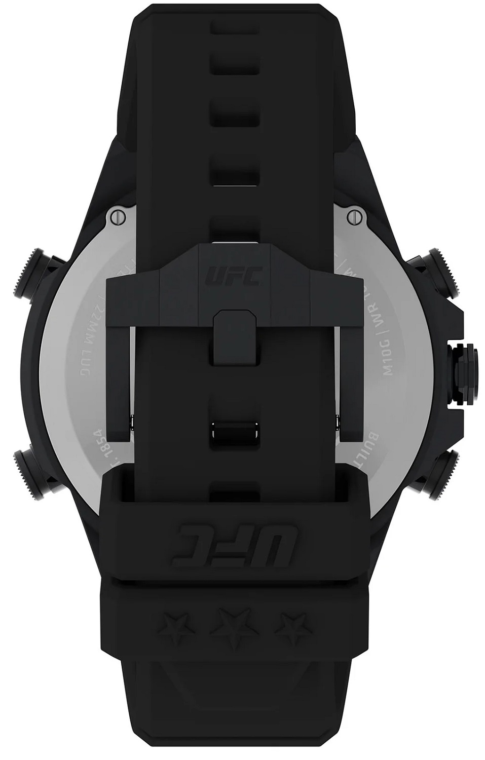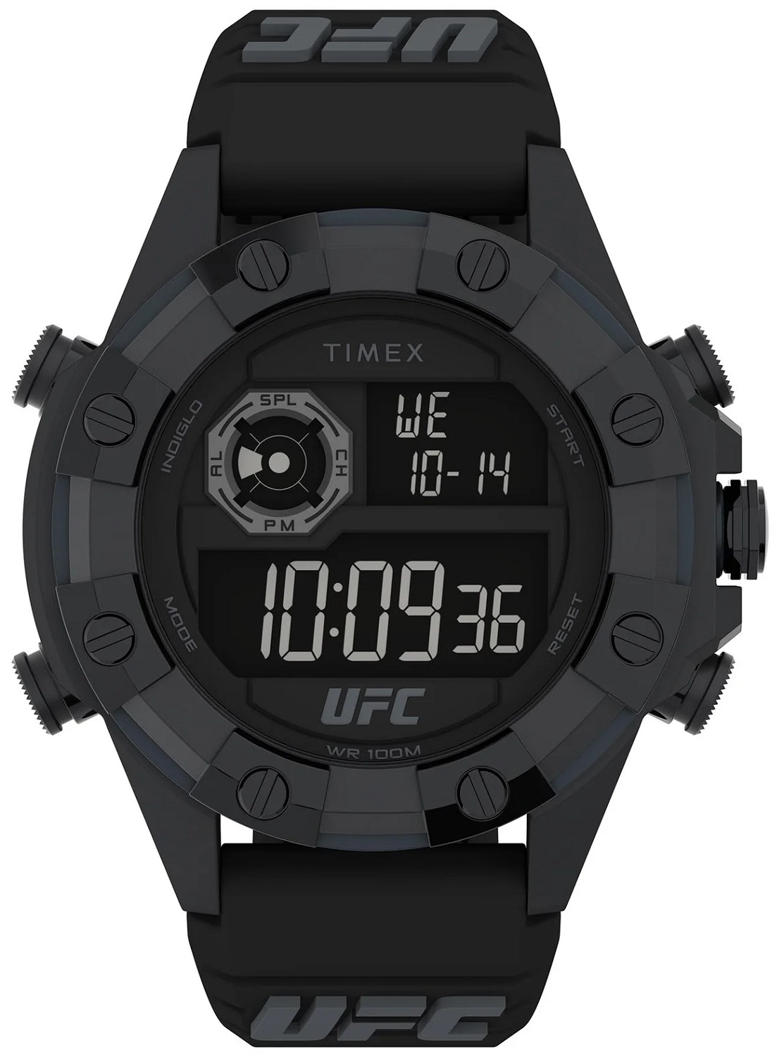 Динамизм и свобода - основные черты современного мужчины. Эти часы как нельзя лучше дополняет его мужественный образ. Часы-хронограф с секундомером и цифровым циферблатом UFC Kick. Цифровой дисплей показывает: хронограф с памятью на 24 круга, 12-ти и 24-х часовой формат времени, таймер обратного отсчета до 24 ч, настраиваемый будильник, календарь. Подсветка дисплея Indiglo. Силиконовый ремешок с классической застежкой.
