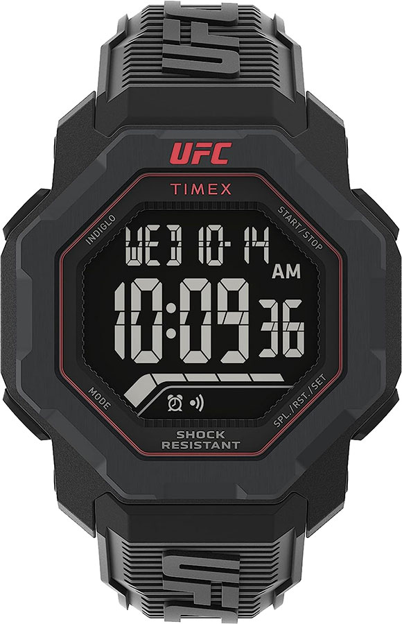 Эффектное сочетание яркого дизайна и спортивного стиля превращает эти часы в пример для создания идеального образа. Часы-хронограф с секундомером и цифровым циферблатом UFC Knockout. Цифровой дисплей показывает: хронограф с памятью на 24 круга, 12-ти и 24-х часовой формат времени, таймер обратного отсчета до 24 ч, настраиваемый будильник, календарь. Подсветка дисплея Indiglo. Пластиковый ремешок с классической застежкой.